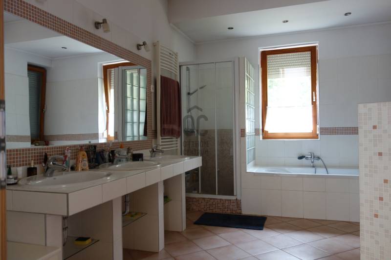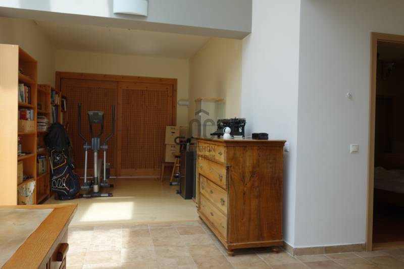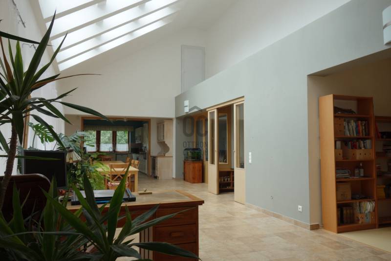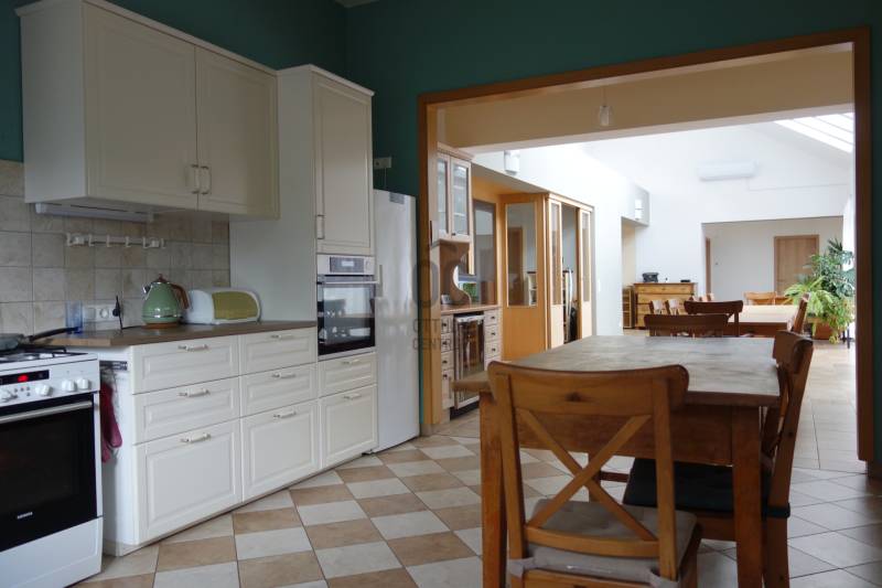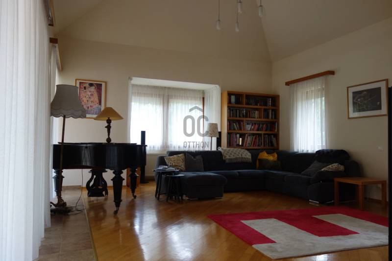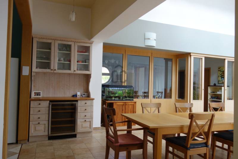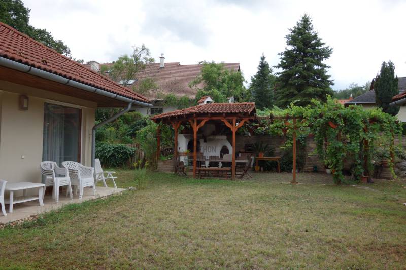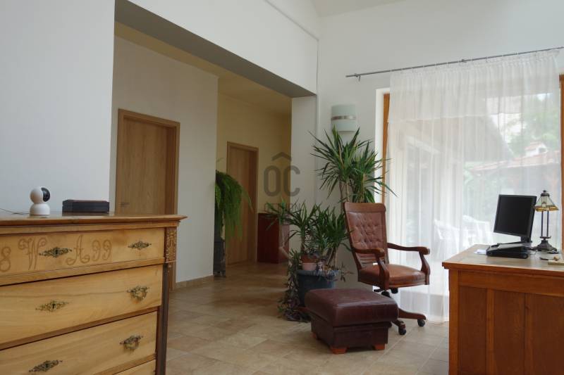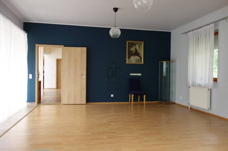 Mogyoródon a méltán kedvelt Szent Jakab lakóparkban eladósorba került egy gyönyörű családi ház. A dupla telken elhelyezkedő ingatlan 2003-ban épült.A körbejárható egy szintes házban nagy terekkel rendelkező otthon kiváló lehet nagyobb családoknak vagy akár több generáció összeköltözésére is. A közel 300nm-s házat 6 szobával, három fürdőszobával tulajdonosai a Feng Shui elvei szerint álmodtak meg. Ennek és az építészeti tervezésnek köszönhetően rendkívül jó energiája vana háznak. Nagy terek, tágas szobák és kényelmes - praktikus kialakítása minden korosztály számára a kényelmet szolgálja. Például mosókonyha, dolgozószoba,gardrobeszoba, fitnesszrészleg és a már beépített tetőteret tárolónak használva. Ez utóbbi tovább fejleszthető, lakótérként használható. Az igen tágas télikertjelenleg étkező-közösségi tér, tetőablakai nyithatóak. A házban akár két különálló lakrész is kialakítható, külön bejárattal. Ennek előkészítése megtörtént, ehhez csupán egy fal megépítése szükséges. Energetikailag kítűnő, besorolása EE, öko jellegű energiafelhasználással. Fűtését a két évvel ezelőtt telepített hőszivattyú, melegvízellátását egy kombi gázkazán biztosítja, mely fűtésre is alkalmas. A házban 4 db klíma található, a hidegburkolatos helyiségekben padlófűtés van. A gyönyörű ősfás nagy telek-kert kiválóan alkalmas családi összejövetelek megrendezésére és kertészkedésre egyaránt. Számos gyümölcsfa, kerti tó és grillező, illetve kemence a szaletli alatt, minden igényt kielégít. A kertben öntözőrendszer és egy kerti tó is kialakításra került. Egy nagyon helyes borospince is helyet kapott a kertben, ahol a család férfitagjai barátokkal elvonulhatnak. Az épület U alakú kialakításával közrefogott terasz és a kert szélvédett, napos. A két állásos garázs tágas, felette tároló kapott helyet. A lakópark nyugalmát őrző-védő szolgálat vigyázza. Nívóját beléptető rendszer és portaszolgálat emeli. A lakópark fenntartása mint közösköltség 25eFt havonta.Aki itt él, csendes, nyugodt zöld környezetben erdő mellett egy másfajta életminőséget tudhat a magáénak. Rendkívül jó a megközelítése, autóval 20-25 perc, hévvel 35perc alatt érhetjük el az Őrs Vezért terét. Tulajdonosai nagyon szeretnek itt élni, gyerekek kirepülése hozatta meg velük az eladás melletti döntést. Várom hívását, egy élmény lesz a bemutató is!