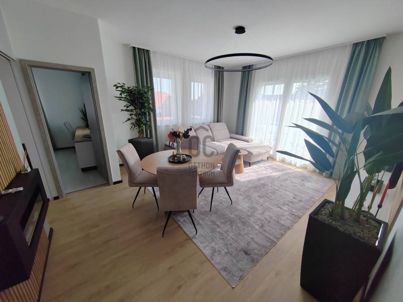 Azonnal költözhető, teljesen berendezett nappali + 2 szobás lakás kiadó magas minőségű kivitelben és modern berendezési tárgyakkal, 7 lakásos társasházban.Ide csak a bőröndjét kell behúzni!Főbb jellemzők:- Új építésű, 1. emeleti lakás erkéllyel- Teljesen berendezett és gépesített, stílusos enteriőr - Hőszivattyús padlófűtés → alacsony rezsi, fenntartható megoldás- Klimatizált minden évszakra- Ingyenes kocsibeálló a bérlők részéreH tarifás áram igényelhető a még kedvezőbb költségekhez!A bérleti díj tartalmazza:- biztosítás- internet és TV szolgáltatás- nincs közösköltségFeltételek:- 3 havi kaució szükséges- minimum egy éves határozott idejű szerződés- azonnal költözhetőEz a lakás ideális választás azoknak, akik egy modern, kényelmes és költséghatékony otthonra vágynak, ahol minden adott a nyugodt, gondtalan mindennapokhoz.