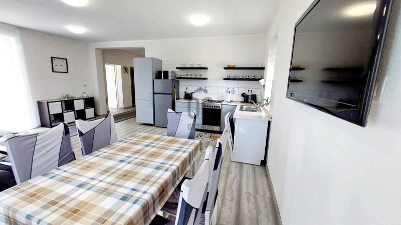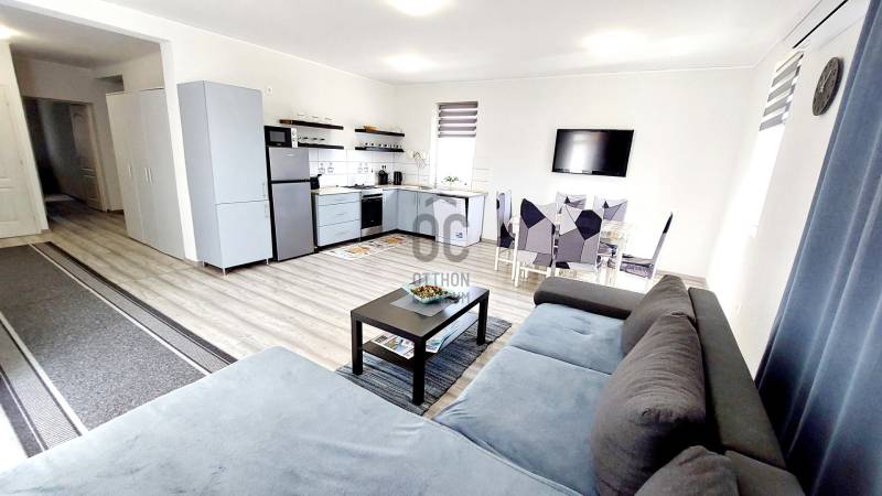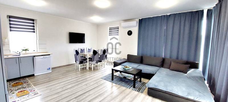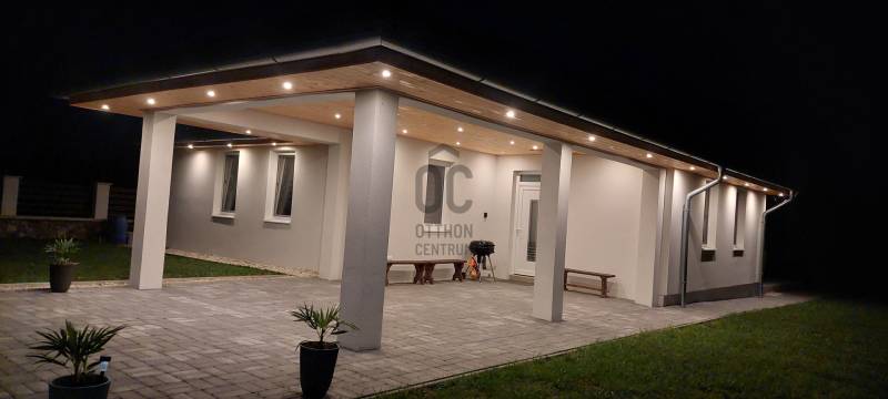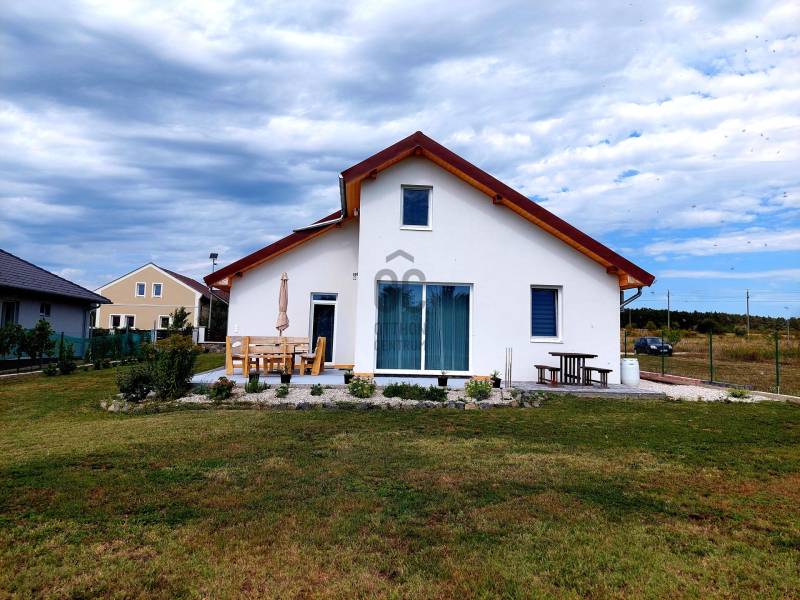 Tapolca új családi házas övezetében 2023-ban elkészült családi házat ajánlok figyelmébe. Az ingatlan hasznos alapterülete 92 nm, melyet a fedett gépkocsibeálló valamint a terasz növel.A tetőtérben további helyiségek alakíthatók ki a tulajdonos elképzelése szerint. A letisztult, fiatalos modern ingatlan minden igényt kielégít, a jelenlegi kor elvárásai szerint épült. Az épület központi helye a nyitott tágas és világos nappali-étkező konyha. Ezen központi helyen kívül három megfelelő méretű hálószoba áll rendelkezésre. A fürdőszoba tágas, modern.A két éve használatba vételi engedéllyel rendelkező épület még nem volt lakott, így leendő tulajdonosa ténylegesen egy új ingatlan birtokosa lehet. Az ingatlan fűtéséről jelenleg a nappaliban felszerelt egy nagy teljesítményű AUX hűtő-fűtő klíma gondoskodik.A ház energetikai besorolása B. A falak, a födém és a tető hőszigeteltek, az ablakok és erkélyajtók 3 rétegű hőszigetelt üvegezéssel rendelkeznek. Elhelyezkedését tekintve elvehetetlen panorámával rendelkezik a Tanúhegyekre. A teraszról a Csobánc hegy, Gulács, Badacsony, és Szent György-hegy látványa tárul elénk.Boltok, bevásárló központok, iskola, óvoda séta távolságra találhatók. Az 1004 nm-es telek körbekerített, füvesített, gondozott. A rendelkezésre álló zöldterület több féle hasznosításra is lehetőséget ad. Az ingatlan per és tehermentes, jogilag rendezett. Megvásárlását követően szinte azonnal birtokba vehető. A kínált ingatlan megvásárlásához start hitel és családi otthonteremtési kedvezmény is felvehető. Tapolca mind a turisták, mind az állandó lakosok tekintetében egy kedvelt város. Elhelyezkedésének köszönhetően a Balatonfelvidék és a Balaton közelsége miatt ideális választás lehet nyaralónak, szálláskiadás esetén jövedelem termelő befektetés. Amennyiben felkeltettem érdeklődését, vagy kérdése merül fel, úgy várom megtisztelő hívását!