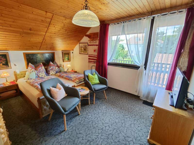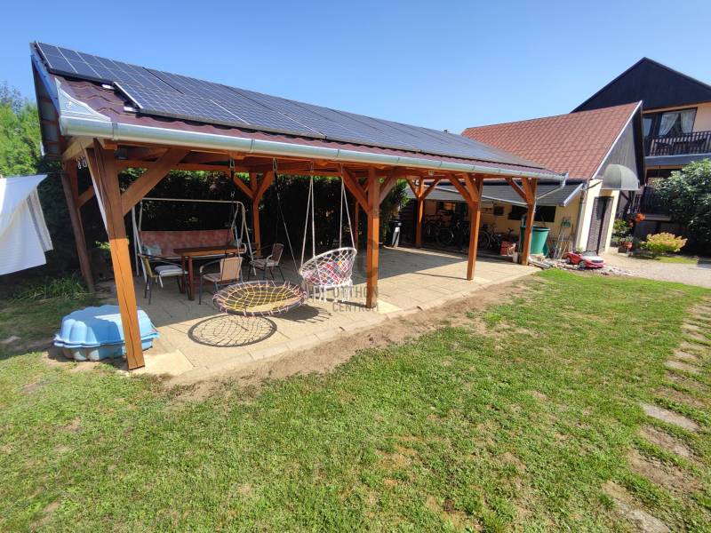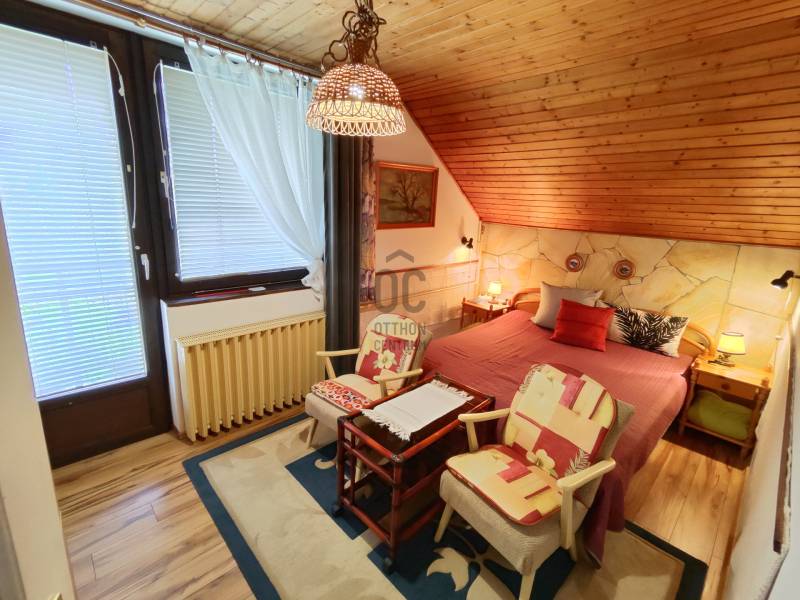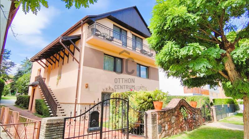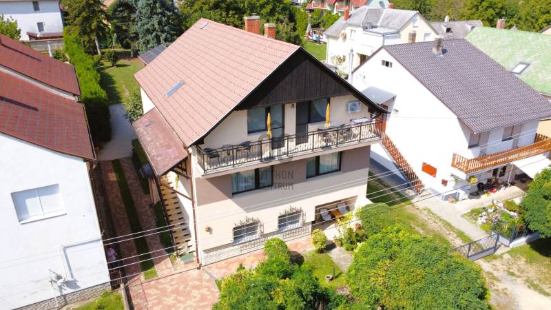 Kiemelt megbízás kizárólag irodánk kínálatában!A 795 m2-es telken elhelyezkedő ingatlan Hévíz egyik kedvelt csendes utcájában található. A jelenleg magánszálláshelyként is működő családi ház kiválló választás befektetésnek vagy akár több generációs lakhatásra is.A 88 m2-es két bejárattal rendelkező középső szinten, lépcsőház, közlekedő, előszoba, tágas nappali konyhával és étkezővel, kamra, fürdőszoba, WC, 2 hálószoba, erkély kapott helyet.A külső és belső bejárattal is megközelíthető 113 m2-es alsó szinten található nagy tároló, kazánház, illetve egy apartman melyben egy konyha-étkezővel, kamra, közlekedő, fürdőszoba/WC, 2db fél szoba, terasz került kialakításra. A legfelső 83 m2-es szinten 2 apartman található, az egyikben konyha-étkezővel, hálószoba, fürdőszoba, WC, erkély. A másikban konyha-étkezővel, 2 hálószoba, Fürdőszoba, WC erkély lett kialakítva.A ház melegéről gáz és vegyestüzelésű kazán, a középső szinten ezek mellett cserépkálya is gondoskodnak, a nyári melegekben pedig klímák a hűtésről.Az udvarban továbbá található egy fedett tásalgó, garázs és 3 fedett kocsibeálló.A ház pár éve 10cm-es külső szigetelést, a kocsibeállók tetején pedig 4 KW-os napelem rendszert kapott.A bútorok megállapodás szerint.Ha a hirdetés felkeltette figyelmét, megtekintés céljából hívjon bizalommal!Az ingatlan a központtól autóval 1 percre, Keszthely központja 8, a Balaton pedig 9 km-re található! Több gyógyfürdő is található a környéken.Így bármely évszak legyen, bármely korosztály számára kikapcsolódási lehetőséget jelenthet ezen fürdők SZÉLES SKÁLÁJÚ WELLNESS SZOLGÁLTATÁSAI! Csodálatos zöld környezetben várja Önt a világon egyedülálló Hévízi gyógytó. A tó körül elterülő erdős parkok és a város védett növényvilága a nyugodt pihenés és gyógyulás záloga. A fürdőváros tiszta levegője és barátságos atmoszférája, az itt-élők vendégszeretet mind fokozzák a gyógyhatást. A tó egész évben várja vendégeit, mivel a víz hőmérséklete télen sem csökken 22 C° alá, nyáron pedig eléri a 38 C°-ot is. A forrásbarlangból másodpercenként előtörő 410 liternek köszönhetően a tó vize három és fél nap alatt teljesen kicserélődik, ezáltal folyamatosan tiszta marad.Az adatok kizárólag a megbízóink által rendelkezésünkre bocsátott információkon alapulnak.Fentiekre tekintettel, az adatok teljességéért, helyességéért és aktualitásáért nem vállalunk felelősséget.Az árváltozás, adatmódosítás és közbeni értékesítés jogát fenntartjuk, mindezekért jogi felelősséget nem áll módunkban vállalni.