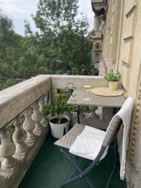 Tágas, erkélyes lakás a VI. kerület szívében – befektetésnek és otthonnak is kiváló!Eladásra kínálunk egy első emeleti különleges adottságokkal rendelkező, 99 m²-es, 4 szobás, téglaépítésű lakást Budapest egyik legkeresettebb részén, a VI. kerület frekventált környékén. A lakáshoz tartozik egy 3 m²-es hangulatos erkély, amely tovább növeli a komfortérzetet a város szívében. A lakás észak-nyugati fekvésű, tágas szobákkal és galériával rendelkezik. Az erkély és a szobák ablakai a Podmaniczky utcára néznek, amely másik oldalán a MÁV nyugati pályaudvari épületsora található, melynek zöldterületté alakítása folyamatos téma a budapesti közéletben. Az átalakítás esetén a lakás összes szobájának ablakai és erkélye zöldövezetre fog nézni. A társasház karbantartott, liftes, a belső udvar rendezett. A lakóközösség aktív, az idei évben köteleződött el a tetőszerkezet felújítása mellett, amelyet részben önkormányzati támogatással finanszíroz a ház. Elhelyezkedés:3-as metró és 4-6-os villamos: 5 perc séta72/73/76/70-es trolik, 105-ös és 210B buszok, valamint több éjszakai járat is egész éjjel közlekedikWestend Bevásárlóközpont: séta távolságraVárosliget, Margitsziget: tömegközlekedéssel könnyen és gyorsan megközelíthetőFőbb adatok:Alapterület: 99 m² + 3 m² erkélySzobák: 4 tágas és világos szoba, ebből egy galériávalBelmagasság: 3.7mFekvés: észak-nyugatiÁllapot: lakható, igény szerint felújítható (kisebb felújításon esett át 2 éve)Lift: vanFűtés: cirkó (gázkazán)Parkolás: utcai, lakossági engedménnyelKlíma: egy szobában bekötve, kültéri egység az erkélyenTulajdoni viszonyok:1/1 tulajdon, tehermentes Kinek ajánljuk? Nagycsaládosoknak, akik belvárosi, jól megközelíthető, mégis tágas otthont keresnek Befektetőknek, akik keresik a magas megtérüléssel bíró ingatlanokat a turisztikailag kiemelkedő környéken. A lakás könnyen ketté bontható, és külön-külön kiadható. (Lásd a mellékelt felújítási tervet) Kiadásra keresőknek – a lokáció és az elosztás garantálja a folyamatos érdeklődést, akár hosszú, akár rövid távonMegtekintés előre egyeztetett időpontban, akár hétvégén is lehetséges. Keressen bizalommal!