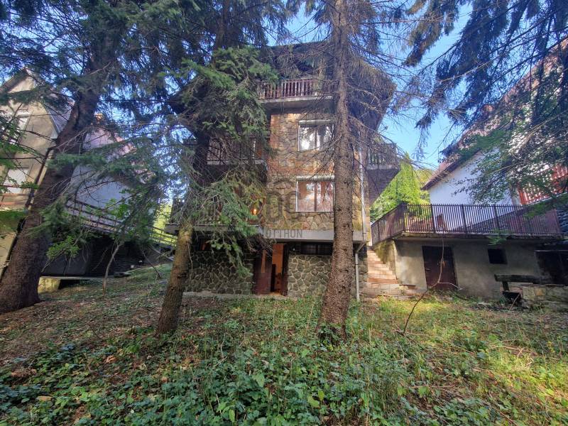 Eladó 3 szintes, 150 m²-es, 7 szobás ház Mátraszentimrén, Galyatetőn!2 külön egységre osztható, külön bejárattal, 3 fürdőszobával, 2 konyhával.A ház szerkezetileg stabil, összközműves, tehermentes, fűtése vegyestüzelésű + gázkazán.Elhelyezkedése: erdő szélén, a kék túra útvonal mentén, közel a település központjához.Az ingatlanhoz tartozik még egy kis épület a hatalmas fenyők lábánál, mely akár szauna-épületként is kialakítható!Szálláshelynek, panziónak, vendégháznak kiváló választás!#Befektetés #Vendégház #PanzióLehetőség #Mátra #Galyatető #EladóIngatlan #KékTúra