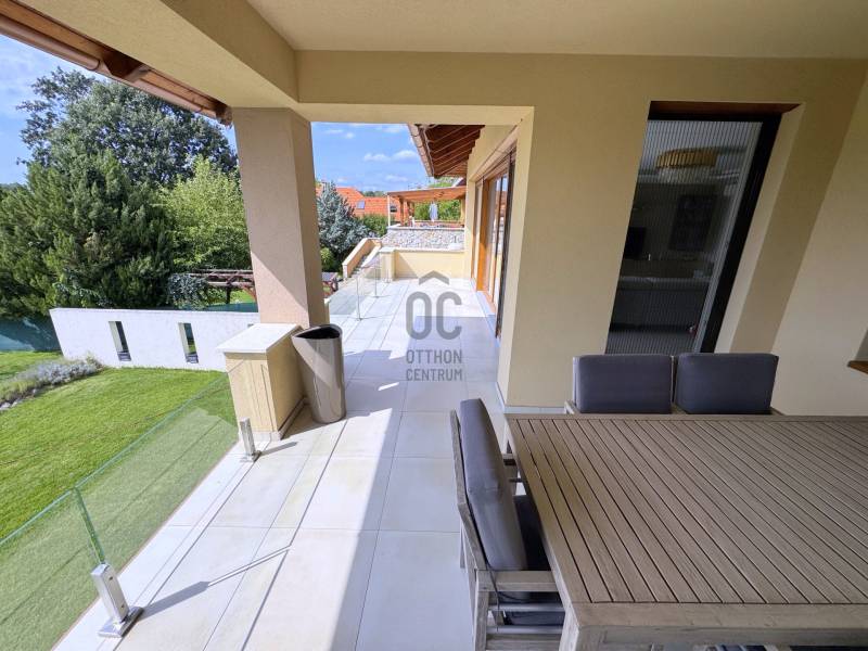 Gödöllőn eladóvá vált egy rendkívüli minőségben megépített 328nm-es, 7 szobás önálló családi ház 1200nm telekkel!A város központjához közeli Fenyves körzetben találod, impozáns környéken, ahol csak újszerű és űj építésű házakat találsz.Ez a prémium minőségű egyedi Otthon igazi ritkaság és csak olyanoknak ajánlom, akik a mediterrán stílusú meleg szineket kedvelik és a luxust.A három szinten mindent megtalálsz ami ahhoz kell, hogy kényelmesen, békében és biztonságban élhess családoddal.Akár az 5 hálószobáról, 4 fürdőszobáról vagy többi kiegészítő helyiségről legyen szó, itt mindenki megtalálja a számítását!+ A ház 2019-ben épült, 30-as Porotherm téglából, melyre 15cm szigetelés került. A födém teljes értékű, nagy teherbírású szigetelt beton födém, a padlástér tárolásra alkalmas és a tetősík is szigetelt.+ 10 kw-os napelem látja el a ház elektromos áram igényét, ez elegendő a teljes háztartás áramellátására, beleértve az elektromos autók töltését.+ A ház fűtését jelenleg gázkazán biztosítja, ám már megvásárlásra került egy új hőszivattyú, ami beszerelésre kész és a vételár részét képezi.+ A középső szinten padlófűtés van, a többi szinten radiátorok. Ezeket egészíti ki a fan-coil rendszerű hűtő-fűtő klíma minden helységben.+ Az alsó szinten kapott helyet egy nagy méretű háztartási helyiség és mosókonyha, egy kisebb, lépcső alatti tároló, egy közösségi tér, valamint egy további szoba saját fürdőszobával. Ezen túl még egy szauna és egy újabb fürdőszoba.+ A bejárati szinten lévő a két autó számára kényelmes, tágas garázsból az előszobába érkezünk, ahonnan egy vendégmosdó nyílik. Tovább haladva a ház többi részétől szeparált szoba található, mely remekül használható akár vendégszobaként vagy dolgozóként.+ Innen a tágas nappaliba juthatsz, ami mellett helyett kapott egy teljesen felszerelt szigettel is ellátott konyha-étkező. Ezen túl egy lenyűgöző kilátással ellátott erkély is növeli a komfort érzetet.+ A felső szinten három külön nyíló szoba erkély kapcsolattal, valamint két fürdőszoba található, egyikük közvetlenül az egyik hálószobából nyílik, így teljesen privát.További extrák: fürdésre alkalmas kerti tó, élménymedence, minden ablak szúnyoghálóval és redőnnyel felszerelt, riasztó rendszer, kapucsengő, központi porszívó, rengeteg beépített gardrób szekrény, autómata öntöző rendszer stb.Az ingatlan jogilag rendezett, akár hitelre is megvehető és akár 2-3 hónap alatt is költözhető. Bár az otthon start hitelre nem jogosult, hidd el sok extrái miatt megéri a piaci hitelt felvenni rá.Rengeteg érv szól e mellett a remek Otthon mellett, de inkább gyere el, nézd meg és szeress bele te is!