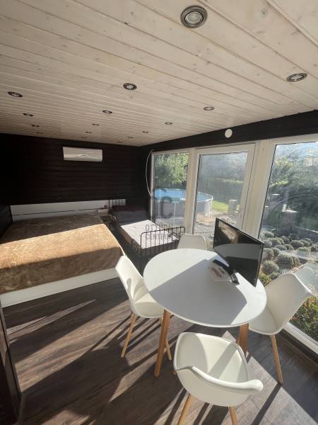 Badacsonyörs csendes, zöldövezeti részén kínáljuk megvételre ezt a 2172 négyzetméteres telket. A terület 2 helyrajzi számból áll, a területek hivatalos összevonatása után a badacsonytomaji Helyi építési szabályzat szerint beépíthetővé válik.Jelenleg egy modern, 30 négyzetméteres hűthető-fűthető mobilház található rajta, amely kis nyaralónak is tökéletes választás, emellett pedig helyet kapott még egy 6 személyes lakókocsi és egy régebbi, tárolóként funkcionáló, tégla épület is a telken belül, valamint egy fedett kiülő/ terasz.A kert egésze szépen gondozott, parkosított, gyümölcsfákkal beültetett.A terület hétvégi házas építési övezetben található, azon belül ÜH-3-as övezeti besorolás alá esik:- kialakítható legkisebb teleknagyság beépíthetőség szempontjából 1500 négyzetméter- legkisebb telekszélesség 16 m- beépítés módja szabadonálló- maximális beépítettség mértéke 10%- maximális építménymagasság 4 m- Zöldfelületi arány 65%A terület közművesített, víz, villany és csatorna is bevezetésre került, gáz az utcában található.Elhelyezkedéséből adódóan a telek egésze tájpanorámás a környező tanúhegyekre. Ajánlom az ingatlant mindazok figyelmébe, akik a mindennapi nyüzsgésből kiszakadva a megérdemelt pihenést nyugodt környezetben szeretnék eltölteni távol a város zajától!Amennyiben kérdése merülne fel az ingatlannal kapcsolatban, vagy szeretné azt megtekinteni, kérem keressen megadott elérhetőségeim egyikén!