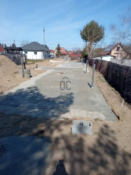 Veresegyházon Viczián városrészben csendes, családi házas környezetben kínáljuk megvásárlásra egy újépítésű, FÖLDSZINTES kialakítású ikerház mindkét lakását. A két utcára nyíló telek adottsága miatt a két ikerfél egymásnak háttal épül, így mindkét tulajdonos külön utcáról járhat be a saját ingatlanába, nincs egymáson átjárás, a telek középen el lesz választva. A lakóépület belső elosztása kiváló, a mai igényeknek megfelelő: kényelmes méretű, 3 külön nyíló hálószoba, egyikhez privát fürdőszoba tartozik, tágas, világos, teraszon át kertkapcsolatos nappali-konyha-étkező, kamra, nagy előszoba, háztartási helyiség, külön mellékhelyiség és még egy fürdőszoba. Fedett, tornácos jellegű terasz, továbbá egy nyitott, térkövezett terasz. Egy autóval garázsban parkolhatunk, további autóbeállási lehetőség adott a telken. Az ingatlan három féle készültségi fokban vásárolható meg:kulcsrakészen 109 000 000 Ft-os áron, emelt szerkezetkészen 76 500 000 Ft-os áron, szerkezetkész állapotban pedig 58 500 000 Ft-os áron. Kulcsrakész állapot 2026. március végére várható. A készültségi fok szerinti műszaki tartalom rendelkezésre áll, érdeklődés esetén megtekinthető. Műszaki paraméterek: a lakóépület Porotherm Klíma téglából épül homlokzati hőszigeteléssel, a fűtést hőszivattyú biztosítja, a hűtésre pedig egy központi klímaberendezés kerül beépítésre, a kulcsrakész vételárban napelem előkészítés is benne van. A két ház között dupla főfal épül.