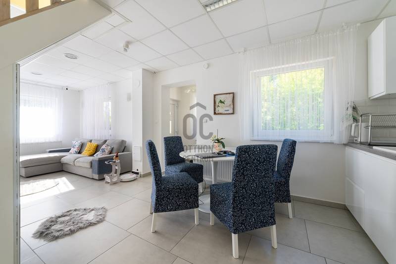 Sülysáp központi részén, a Dózsa György úton kínálom eladásra ezt a jó állapotú, két szintes ikerház egyik felét. A telken két ház található és ez a leghátsó, így nyugodt és csendes. A telek végében a Sápi patak található így még környezet közelibb és egyedülálló hangulatot biztosít.Jelenleg albérlők lakják 260.000Ft havidíjért. Hosszútávon tovább bérelnék így ez egy nagyon jó befektetés lehet a következő tulajdonosnak.- Telek mérete 400nm tágas, parkosított, térkövezett udvarral, több autó parkolására is alkalmas- Ház alapterülete, 78 m², tágas nagy nagyon napfényes terekkel- A tetőtér is be van építve, ahogy egy \"pakolós\" és egy nagyszoba található, 240-es belmagassággal- Falazata tégla amin 10cm hőszigetelés van- Fűtése gázcirkó és radiátorok, hűtést pedig egy 2,6- os klíma biztosítja- Nyílászárók korszerűek, alsó szinten műanyag ablakok, tetőterekben pedig fa, rolóval- A konyha modern, fényes, világos, beépített gépekkel- Fürdőszoba az emeleten sarokkádas, a földszinten pedig zuhanyzós.Elhelyezkedés:- Budapest autóval kb. 30 perc alatt elérhető. A vasútállomás és a buszmegálló is közelben található. Ez az ingatlan kiváló választás lehet nagyobb családoknak, akik szeretnének tágas házba költözni, nagy kerttel és jó közlekedéssel. A természetközelség és a rendezett állapot miatt azonnal költözhető, befektetésnek is remek lehetőség.