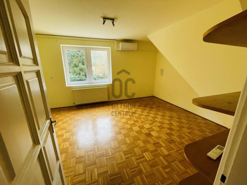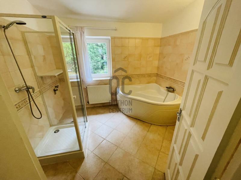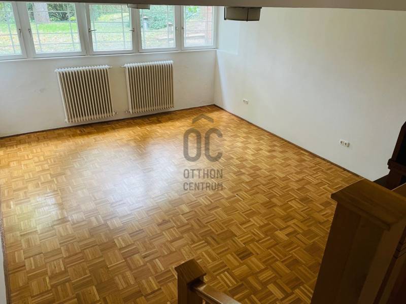 Kiadó családi ház.LeírásBudapest XII. kerület, Sas-hegy oldalában csendes mellékutcában található a ház. 1200 nm-es saroktelken álló igényesen kívül-belül felújított mediterrán stílusú villa bérbe adó.Az épületben két lakás található. A nagyobb kb. 180 nm-es nappali-étkező, 3 hálószoba, fürdőszoba, gardrób szoba, előszoba, WC; a kisebb lakás ami a ház részét képezi,50 nm-es 1 nagyméretű szoba, 1 konyha-étkező és 1 fürdőszoba helyiséget foglal magába.Az épületben 2 garázs és az udvaron további 5-6 gépkocsi beálló található. Az épület klimatizált, frissen felújított, távirányítású kerítés és garázskapu nyitóval, riasztóval, kábeltv-vel, mosogatógépes, szagelszívós konyhákkal és a kertben automata öntözőberendezéssel van felszerelve. Az épület alatt egy kb. 30 nm-es száraz pince is található. A nagyobb lakás beosztását a csatolt alaprajzok, mutatják.Az ingatlan a Hegyalja úti kereszteződéstől kb. 100 m-re található. A Hegyalja úti sarokban van a 8-as busz, aminek a háztól, kb 40 méterre van a megállója, melynek belvárosi végállomása a (kb. 6. megálló) a Ferenciek tere. Az ingatlan az M7-es autópálya városi szakaszáról is jól megközelíthető. Az ingatlan gyermekes családnak lehet ideális, de alkalmas 8-10 főt foglalkoztató kisebb cégiroda, bemutatóterem ,mágán óvoda, egészség központ, céljára is alkalmas lehet. Havi bérleti díj: 800.000/hó + rezsi.\"A rezsi 43.000Ft/ hó alapdíjas/hó\".Jó közlekedés ,csendes zöld környezetben.