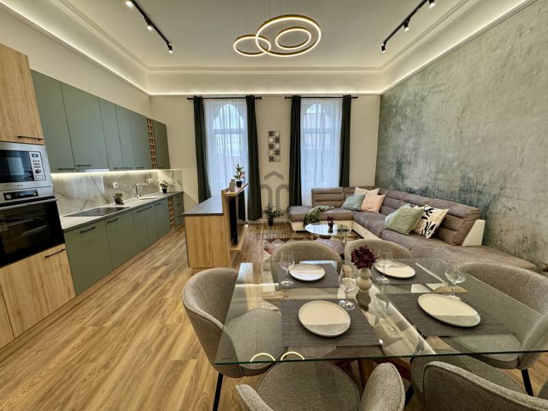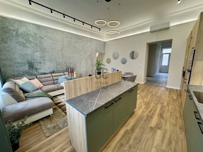 Eladásra kínálunk egy gyönyörű, 88 m2-es lakást a belvárosban a 7. kerületben.Az ingatlan 88 négyzetméteres 3 hálószobával, 1 amerikai konyhás nappalival és 2 fürdőszobával rendelkezik, így ideális lehet nagyobb csoportok vagy családok számára is.A lakás teljesen újjáépített, minden részletében maximálisan igényes, rendkívül praktikus és magas színvonalú műszaki felszereltségű otthon vár új lakójára.A felújítás mindent érintett: a gépészetet (elektromos hálózat, vízvezeték, stb), a burkolatokat és a nyílászárókat is.A lakás fűtése, melegvíz ellátása egyedileg történik. (Új gáz cirkó)Gépesített konyha, teljes berendezés.Az ingatlan a 4. emeleten helyezkedik el, liftes házban.Néhány éve történt meg a a belső udvar, a körfolyosók, a lépcsőház és a külső belső felújítása.Közlekedés, kikapcsolódás, mindennapi dolgok:A lakás elhelyezkedése páratlan: a pezsgő, mégis otthonos Erzsébet körút közvetlen közelében hangulatos cukrászdák, kávézók(mint például a New York Kávéház), éttermek és bárok sorakoznak.Emellett elegáns szállodák találhatók, mint a Boscolo Budapest, a Hotel Nemzeti Budapest MGallery, vagy a Ibis Styles Budapest Center. Az utcában helyet kapott a híres Madách Színház, amely kulturális programokkal teszi teljessé az itt élők életét.Az épület előtt indul a 4-es és 6-os villamos,és pár perc alatt elérhetővé teszik az Oktogont vagy a Blaha Lujza teret. A Blaha Lujza téren közvetlen átszállási lehetőség nyílik az M2-es metróra, valamint több buszjáratra is (5, 7, 7E, 8E, 108E, 110, 112, 133E, 178), amelyek gyors összeköttetést biztosítanak Budapest szinte minden pontjával. Az Oktogon felől az M1 metróvonal is elérhető.A modern belvárosi lakás nemcsak lakóhelyként, hanem befektetési lehetőségként is kiemelkedő választás.Amennyiben felkeltette érdeklődését ez a különleges ingatlan, kérem, ne habozzon kapcsolatba lépni velem.Szívesen válaszolok kérdéseire, és segítek Önnek megtalálni a legjobb megoldást ingatlanvásárlási terveihez.A bizalom és a szakértelem a legfontosabb számunkra, így bármilyen információra van szüksége, állok rendelkezésére.