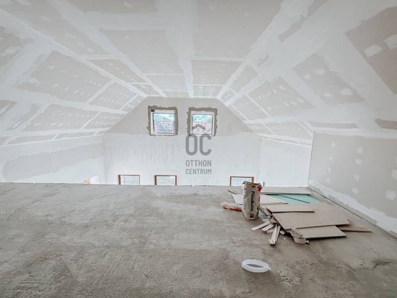 Eladó Vértesacsa egyik legszebb, dombtetőn fekvő, panorámás telkén egy napfényes, belső kétszintes, új építésű családi ház!A vételár a TELJES KÉSZENLÉTRE vonatkozik, de jelenlegi készenléti fokában is megvásárolható.FŐBB JELLEMZŐK- 2024-ben kezdték el építeni, hamarosan kulcsrakész állapot - burkolatok még választhatók!- Lakótér: tágas, világos terek – összesen 7 különnyíló szoba- Földszint: amerikai konyhás nappali, étkező, szülői háló privát fürdővel- Emelet: több hálószoba + galériás tér (dolgozónak, játszószobának vagy extra nappalinak is alkalmas)⚙️ Műszaki tartalom- Fűtés: geotermikus hőszivattyú, padlófűtés + fan-coil rendszer- Szellőzés: központi szellőztető rendszer- Energetikai besorolás: A+- Falazat / szigetelés: 10 cm grafitos szigetelés, kerámia falazat- Garázs: a lakótérből megközelíthető, automata kapu előkészítésselTELEK ÉS KÖRNYEZET- 2449 nm- Panorámás fekvés a dombtetőn- Terasz és sütögető kialakítható- Nyugodt, zöld környezet – mégis jól megközelíthetőTOVÁBBI ELŐNYÖK- Letisztult, egységes burkolatok a kulcsrakész árban- Ideális többgenerációs vagy nagyobb családnakHitelképes: építési hitel és CSOK Plusz igényelhetőHa nyugodt, természetközeli, mégis modern otthont keres – ezt érdemes megnéznie! ????✨Keressen bizalommal!