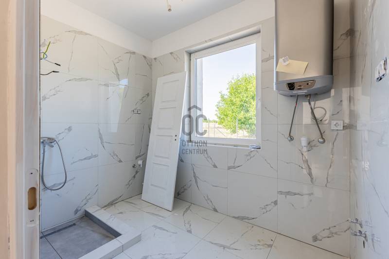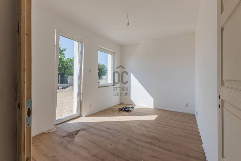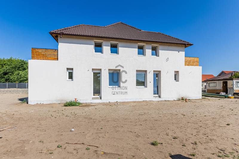 KIEMELT AJÁNLAT!Kiváló referenciákkal!A fényképeken korábban értékesített referenciák láthatók. A látványtervek és a telekről készült képek mutatják a jelenlegi ingatlant.ÚJONNAN ÉPÜLŐ LAKÓPARKBAN, a Waldorf iskolától 2 utcára épül ez az ÚJÉPÍTÉSŰ IKERHÁZ.Egymással mindössze egy tárolónál érintkezve, teljesen SZEPARÁLT KERTRÉSZEKKEL.A helyiek által kedvelt CSENDES, ZÖLD UTCÁBAN, KITŰNŐ MINŐSÉGBEN készül, 460 m2 saját telken.Itt biztosan megtalálja a nyugalmat, aki arra vágyik.Ezen a területen nincsenek és nem is lesznek látható kábelek, ez egy rendezett, újonnan épülő lakópark.Az épület 40cm vastag fallal épül, műanyag nyílászárókkal 3 rétegű hőszigetelt üvegezéssel, Terrán Zenit Resistor Onix tetőcserép fedéssel, hőszivattyú kiállással, padlófűtéssel, napelem-, riasztó-, és klímaelőkészítéssel, illetve egy klíma egységgel a nappaliban.A hálószobákba laminált padló, a többi helyiségbe járólap kerül, de ez most még igény szerint módosítható.A FŰTÉSE és a FENNTARTÁSA KEDVEZŐ, a korábbi referenciákkal kapcsolatos tapasztalatok alapján a TELJES HAVI REZSI legfeljebb 40-45 ezer forint, és napelemmel REZSIMENTES tud lenni az ingatlan.Napelem beszerzését és kedvezményes beszerelését az ár megbeszélés alapján tartalmazhatja.Fúrt kút is található a telken, bemért, iható vízzel.Csatorna kiépítése után az utca és a környék is aszfaltozva lesz.Az építés jelenleg is zajlik, ezért a BURKOLATOKAT Ön még KIVÁLASZTHATJA, igényeit megadhatja, így a lehető legjobb időben van.Az egyik fél már elkelt, a másik még elérhető.Nettó 99 m2 lakótér, nappali+2 szoba, 2 fürdőszoba és garázs.Igény szerint a garázs még kérhető szobaként, akkor nappali+3 hálószobás lesz az ingatlan, ebben az esetben egy fedett, viacolorozott autóbeállót is tartalmaz az ár.10 percen belül szinte minden elérhető: busz, ovi, suli, boltok posta, cukrászda, virágos, gyógyszertár, benzinkút, stb.ÁTADÁS 2026. május 31-ig, igény szerint hamarabb.Minimum 10 % foglalóval és 20% önerővel LEKÖTHETŐ.CSOK, Hitel, Babaváró és illeték visszatérítés igényelhető rá.Nagyon jó választás mind az ingatlan, mind a lokáció.Hívjon bizalommal a hét bármely napján!Amennyiben saját ingatlanja eladásához a mi irodánkat választja, ezt minőségi szolgáltatások és kedvező feltételek mellett vállaljuk.Az ingatlan CSOK igénybevétele esetén illetékmentes!CSOK, Babaváró, Lakásfelújtás, Támogatott hitelek? Irodánk minden állami támogatás és lakáshitel igény kapcsán DÍJMENTES és SZAKÉRTŐ segítséget nyújt!Igény szerint profi ügyvédi hátteret is biztosítunk.