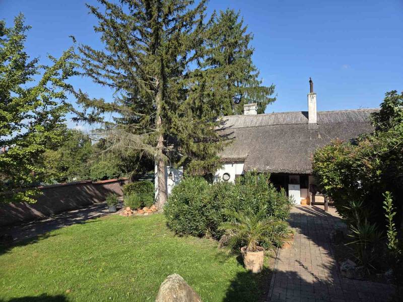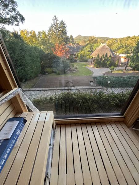 Badacsonytomaj-Badacsonyörs belterületi részén vált eladóvá ez az autentikus jegyekkel bíró, lakóházként bejegyzett ingatlan plusz telekkel, mely valamikor az 1950-es években épült és a folyamatos karbantartásnak valamint felújításoknak köszönhetően megőrizte eredeti jellegét és hangulatát is!A 3323 nm-es telek közművesített, víz, villany és csatorna is bevezetésre került, gáz az utcában található.A ház fűtéséről és hűtéséről hőszivattyús rendszer gondoskodik, a fűtést egy fatüzelésű kis kályha is kiegészíti.A ház hasznos alapterülete 65 négyzetméter, elosztását tekintve egy konyha-étkező, folyosó, 3 szoba, fürdőszoba - wc, valamint háztartási helyiség került kialakításra az épületben.A kert hátsó részében található egy hangulatos kerti tó, amit egy vörös levelű japán juharfa tesz teljessé. A telek végében egy 40 négyzetméteres alapterülettel rendelkező szaunaház került kialakításra, benne 8 személyes finn szauna, 9 kw-os kályhával, a falon egy parajdi sóképpel, zuhannyal, külső pihenővel, ahonnan a kilátás a Badacsonyra néz.A telek részén, egy modern, 30 négyzetméteres hűthető-fűthető mobilház található rajta, amely kis nyaralónak is tökéletes választás, emellett pedig helyet kapott még egy 6 személyes lakókocsi és egy régebbi, tárolóként funkcionáló, tégla épület is a telken belül, valamint egy fedett kiülő/ terasz.A kert szemet gyönyörködtető, az épület előtt kiépített teraszon helyett kapott egy jakuzzi, társalgásra alkalmas kiülő rész és sütögető helyiség.Elhelyezkedéséből adódóan a telek egésze tájpanorámás a környező tanúhegyekre. Ajánlom az ingatlant mindazok figyelmébe, akik a mindennapi nyüzsgésből kiszakadva a megérdemelt pihenést nyugodt környezetben szeretnék eltölteni távol a város zajától!Kérdés esetén, keressen bizalommal az elérhetőségek egyikén.