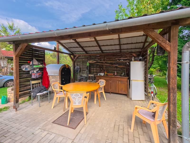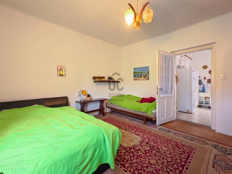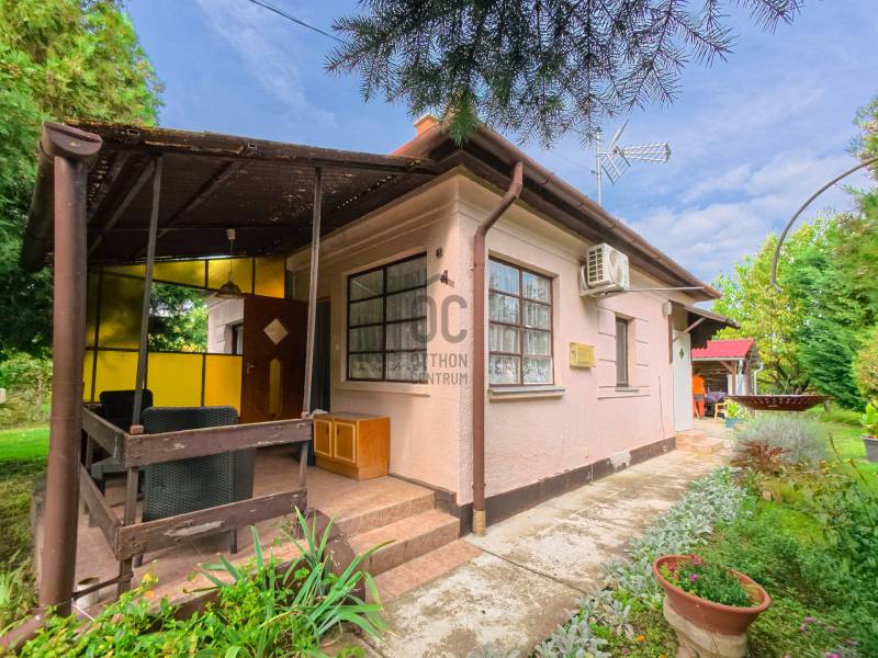 Szívesen élnél egy autentikus balatoni házban, ami tele van nosztalgiával és vidéki bájjal? Ez a 63 négyzetméteres otthon ideális választás fiatal pároknak és családoknak, akik szeretik a természet közelségét és a pihentető vidéki életet. A ház jó állapotban van, így azonnal költözhető és minimális ráfordítással makulálatlan állapotba is hozható, hogy saját kis retro nyaralót alakíthass ki a Balaton délnyugati, nyugodtabb partszakaszán.A ház két hálószobája és tágas nappali étkezője rengeteg lehetőséget kínál a pihenésre és a közös pillanatokra. Egy jól kihasználható, fúrt kút biztosítja a vízellátást, nem csak a kertben, hanem akár az egész ház számára. De természetesen van vezetékes víz a házban, így nem kell aggódni a víz miatt, akár kertészkedéshez vagy kinti játékokhoz is. Két fedett terasz várja a vendégeket: az egyik ideális reggeli kávézásokhoz és kiülős beszélgetésekhez, a másik pedig a családi és baráti összejövetelek színhelye lehet, kemencével és sütögetőhellyel, ahol a nyár minden pillanata különleges lesz.A ház nem téliesített, de egy kis kályha könnyen melegen tartja a hidegebb napokat, emellett hűtő-fűtő klímával is fel van szerelve, így bármilyen időjárási körülmények között kényelmes az ott tartózkodás. A hatalmas telek gyümölcsfákkal van tele, pl füge vagy cseresznye. A szépen karbantartott, jó állapotban lévő tároló és a rengeteg parkolóhely a kertben pedig praktikus megoldásokat kínál a mindennapokra. Akiknek nem minden a kert adta örömök vagy a 700 m-re lévő Balatonban fürdés, azoknak néhány lépésre elérhető a csatorna part, ha horgászatról van szó. Emelett a szabadstrandon szezonban minden elérhető, amire csak vágyni lehet a nyári Balatonon, külön ajánlott a méltán híres Florida Fagyizó!Ez az ingatlan azoknak szól, akik a balatoni élet szépségeit szeretnék átélni, és saját retro menedéküket kialakítani. Csak egy lépés választ el attól, hogy saját paradicsomod lehessen Balaton mellett! Vedd fel velünk a kapcsolatot, és nézzük meg együtt az álomnyaralót!(A képek között mesterséges intelligenciával készített képek is vannak, amik szemléltetik, hogy potenciálisan mit lehetne kihozni az adott helyiségekből, az ingatlanból.)