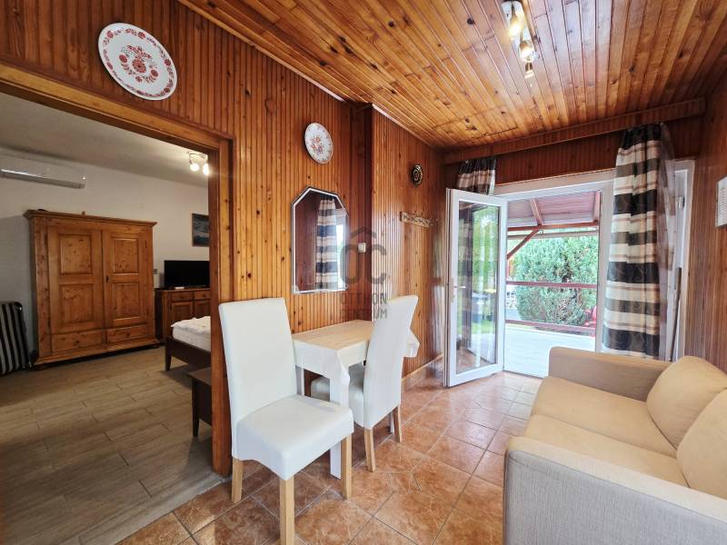 Ez a ház nem akar többnek látszani, mint ami.Egy 40 m²-es, háromszobás nyaraló, amelyben minden adott, hogy kényelmesen használja most, és bőven van benne lehetőség a jövőre nézve.A belső elrendezés egyszerű és praktikus, három külön szobával és egy 17 m²-es terasszal, ahol mindig van hely egy közös reggelinek vagy esti beszélgetésnek. Az ingatlan téliesített, klímával és gázfűtéssel ellátott, így nem kell várni a nyárra ahhoz, hogy használni lehessen.A 808 m²-es telek az igazi aduász: a 20%-os beépíthetőség miatt komoly tartalék van benne. Akár megtartaná nyaralónak, akár nagyobb házat vagy befektetést tervez, itt szabad kezet kap.És ami miatt mindez igazán értékes: a Balaton partja mindössze 200 méter. Nem „autóval pár perc”, nem „könnyen megközelíthető” – hanem tényleg egy karnyújtásnyira van.Ez nem egy giccses prospektus, hanem egy valódi lehetőség: egy ház, ami használható most, és tele van potenciállal a jövőre nézve.Ha Ön inkább lehetőséget, mint illúziót keres a Balaton mellett, akkor érdemes megnéznie.