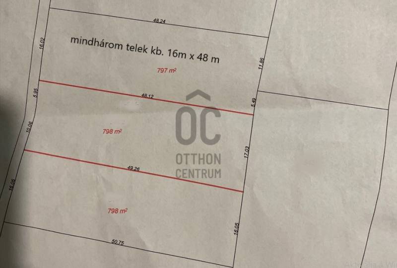 Dömsöd Dabi részén 2184 m2-es telek kerül most értkesítésre.Ez a terület most épp átalakulóban van — a földhivatalnál már folyamatban a három részre osztás, és ha minden papír a helyére kerül, három különálló telek születik belőle, (797 m2, 798 m2, 798m2, mindhárom telek kb. 16 m x 48 m )Mindháromra kétlakásos ház építhető.Belterület, kivett beépítetlen terület.Övezeti besorolása Lke-1Beépíthetőség: 30%Megengedet épület magasság: 4,5 mKözművek: Villany és intetnet az után a telek előtt. Víz keresztutcánál kb. 200-250 méterre.Gáz kb. 50 méterre az utcán.Csatorna, (átemelő rendszeres), utcán, telek előtt.\"Az Lke-1 építési övezetbena) a 600 m2 területű vagy 600 m2 – nél kisebb területű építési telken (az összes épületben) összesen legfeljebb 2 önálló fő rendeltetési egység, és ezen belül legfeljebb 1 lakás vagy üdülő helyezhető el,b) a 600 m2 területnél nagyobb építési telken (az összes épületben) összesen legfeljebb 3 önálló fő rendeltetési egység, és ezen belül legfeljebb 2 lakás vagy 2 üdülő helyezhető el,c) állattartó rendeltetés kiszolgáló rendeltetésként, kiszolgáló épületben vagy melléképítményben helyezhető el,d) a megengedett legnagyobb épületmagasság oromfalas épület esetében 5,0 méter.\"A Duna Holtág csupán 250 méterre van — egy kellemes séta, és máris ott van a vízpartnál. Horgászok, természetkedvelők, nyugalmat keresők — vagy éppen a jövőbeli lakók — garantáltan értékelni fogják ezt a közelséget.Ez a hirdetés az Otthon Centrum Árgaranciás csomagjának része, melyről bővebb információt a http://www.oc.hu/felezocsomag weboldalon talál.Ez az ingatlan a \"Felező csomag\" megbízási portfólióhoz tartozik. Részletek az Otthon Centrum weboldalán.