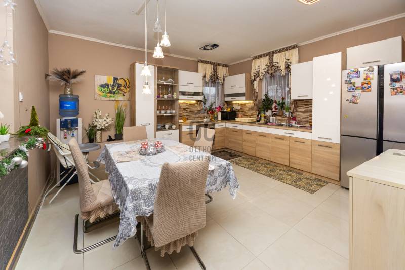 Pécs, Postavölgyben családi házas, csendes részen eladó egy 130 négyzetméteres földszintes ház, melyhez 1097 négyzetméteres telek tartozik. Az ingatlanban 5 szoba található, 2 fürdőszobával. Az egyik fürdőszoba épített zuhannyal, a másik káddal rendelkezik, mindkettő vizes helyiségben van WC is. A jó helyiség kiosztás kényelmes, egymástól zavartalan hétköznapokat biztosíthat egy nagyobb család számára, ugyanakkor a nagy étkező- nappali a közösségi élet fenntartásában játszhat szerepet. A nagy külső- és belső tereket egy 30 négyzetméteres fedett terasz kapcsolja össze ahol még egy kerti sütögető is található, szintén kiváló tér családi, közösségi programok szervezéséhez.A ház fűtéséről jelenleg egy vegyes tűzelésű kazán gondokodik, a gáz bekötése már folyamatban van. 2024-es használatbavételnek köszönhetően az ingatlan újszerű állapotban van. A homlokzat szinezését 2025 őszén csináltatták meg.