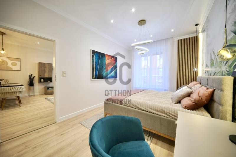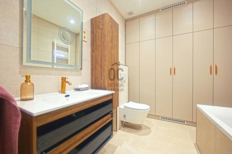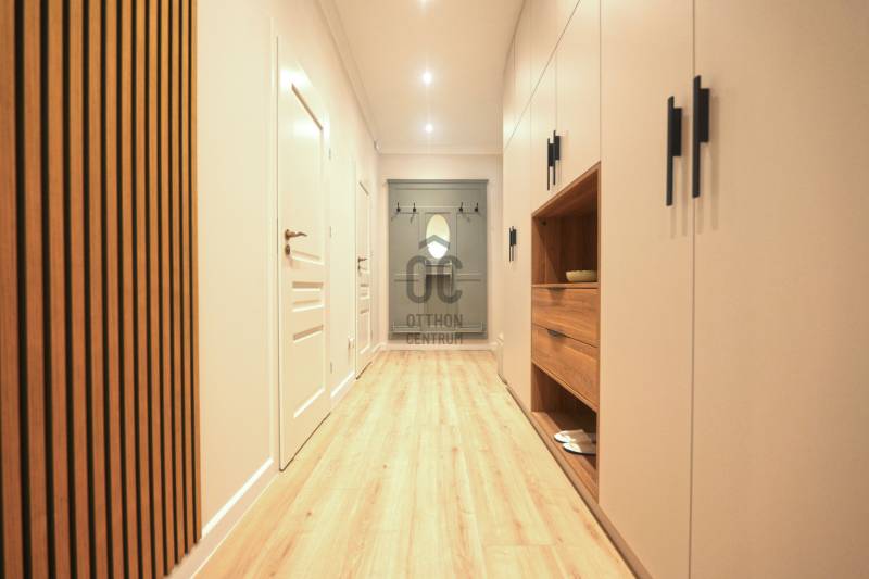 Prémium minőségben felújított 84 m²-es lakás Németvölgy szívében- Eladásra kínálunk egy teljes körűen, magas minőségben felújított, 84 m²-es lakást a kedvelt Németvölgyben, a Márvány utca Alkotás utca feletti szakaszán.- A liftes, kiváló állapotú épület első emeletén található lakás bejárata a frekventált, üzletekkel és közlekedéssel jól ellátott Márvány utcára nyílik, míg a lakás ablakai a csendes, zöld Hertelendy utcára tekintenek, délies tájolással.A lakás elrendezése és helyiségei- Tágas nappali–étkező (23 m²)- Különálló, mégis egybefüggő térélményt adó konyha (10 m²)- Két hálószoba:16 m² – déli fekvésű, a Hertelendy utcára néz11 m² – világos, növényekkel beültetett udvarra néz- Két fürdőszoba WC-vel- Tágas előszoba mennyezetig érő beépített gardróbbal- Külön gépészeti és tárolóhelyiség, mosó- és szárítógép számára előkészítve- A nappali, konyha és előtér közel 40 m²-es összefüggő teret alkotnak, amely rendkívül világos és tágas hatást biztosít.Műszaki tartalom és felújítás- Teljeskörű belső átalakítás: minden válaszfal cserélve- Erősített, hangszigetelt gipszkarton falak- Plusz hangszigetelés a főfalakon- Teljes mennyezeti álmenyezet hűtőpanelek integrálásával- Padlófűtés új, betonozott aljzattal- Daikin hőszivattyú a gazdaságos hűtéshez, fűtéshez és melegvízhez- Teljes elektromos és gépészeti hálózat csere- Villanyóra: 3×16 A- Gázóra: ideiglenesen leszerelve, igény esetén visszaköthető- Nyílászárók és árnyékolás- Új, hőszigetelt üvegezésű fa ablakok a Hertelendy utcai oldalon- Műanyag nyílászáró az udvari szobában- Prémium műanyag bejárati ajtó, acél merevítéssel és felülvilágítóval- Új, motoros redőnyök minden ablakon- Burkolatok, bútorzat és gépek- Prémium vízálló laminált padló a lakás teljes területén- Porcelanosa burkolatok, Hansgrohe szerelvények a fürdőkben- Egyedi gyártású előszoba- és konyhabútorok minőségi vasalatokkal- Beépített Bosch konyhagépek:182 cm magas hűtő-fagyasztómosogatógépkerámia főzőlapsütőpáraelszívó- 3 méter széles beépített gardrób a nagyobb hálószobábanA lakás a kisszoba kivételével minőségi német bútorokkal berendezett, amelyek a vételár részét képezik (igény esetén jóváírhatók)A társasház állapota és költségei- A társasház pénzügyei rendezettek- A tető szigetelése és a villamos hálózat felújítása 2024-ben történt meg- Közös költség 2025.07.01-től: 35 450 FtHa bármi kérdése még lenne, kérem hívjon. A megtekintésre pedig találunk időpontot. Várom a hívását.