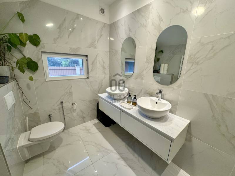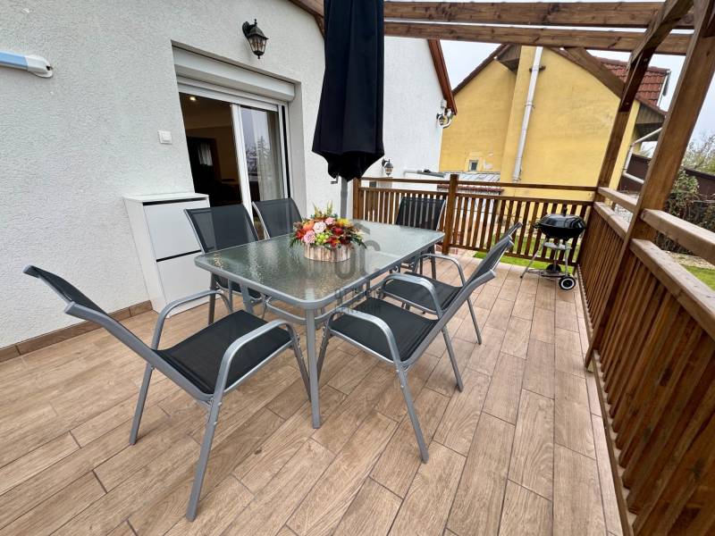 Százhalombatta legszebb részén, az Óvárosban helyezkedik el ez a kiváló adottságokkal rendelkező családi ház. 1994-ben épült és 2024-25-ben lett teljeskörűen, különleges módon és minőségben felújítva. Szeretettel, körültekintően, magas igények szerint lett kialakítva.- 1/1 tulajdonban van- beépített bútorok és garancia alatt álló BOSCH gépek az árban- a többi bútor és gép megbeszélés tárgyát képezi- délkeleti tájolása miatt mindig kellemesen süt be a nap- mozgásérzékelő, riasztó, távfelügyeleti rendszer, 2db 360 fokos kamera mobilapplikációval- műanyag nyílászárók, jó szigetelés és biztonsági bejárati ajtó- a felső emeleti szobából DUNAI PANORÁMA- KERTÉPITÉSZET, -DESIGN, LAKBERENDEZÉS- intimszféra garantáltBuszmegálló kettő is a közelben, közel a vasútállomás és Budapest is fél órán belül elérhető.Ajánlom pároknak, kis- és nagycsaládosoknak.Várom megkeresését!Amennyiben további részletekre kíváncsi:Az első benyomás már a bejáratnál és a gondosan kialakított kertnél magával ragad.Színvilág nem a véletlen műve, tökéletes harmoniában van egymással, akár a feng-shui alapján:A ház, a kerítés, a belső terek színvilága professzionálisan lett tervezve, minden árnyalat tökéletes harmóniában van egymással, a belső berendezést pedig lakberendező készítette.Kert - design garden: 10-12db gyümölcsfacsemete lett elültetve (1 édes alma, 1 savanyú alma, 1 szilva, 1 cseresznye, 1 meggy, 1 körte, 1 barack, 1 mandula, 1 gránátalma, 1 füge stb.). Úgy lettek elültetve, hogy egymás után virágozzanak, így a termésük is folyamatosan, tavasztól késő őszig érkezik (májustól október végéig). A kert teljes mértékben kertész által tervezett és kivitelezett, magas dizájnban kialakított, igazi oázis. Kiemelkedően figyeltek az intimszférára: kb. 20 örökzöld, leyland ciprusok garantálják a privát hangulatot. A kerítésnél babérmeggy sor húzódik, rózsák futnak fel az apácarácsokon, körbe levendula fut és kecskerágók is vannak közöttük. Télen is az örökzöld növények miatt garantált az intimszféra. A gyep a legjobb minőségű sportfűből készült, tartós és strapabíró, a talaj termőréteggel lett feltöltve, hogy minden növény egészségesen fejlődhessen. A kert egyszerre esztétikus, praktikus és teljesen zárt, így maximális intimitást biztosít.Úgy lett kialakítva a kert, hogy a fent említett dísznövények és gyümölcsfák körbeveszik a kerítést, így 200m2 füvesített rész van a kert közepén, így medence, sütögető vagy más szabadidős lehetőségek is könnyen elférnek. Az egyik oldalon vadonatúj drótkerítés is van. Díszkút az udvarban, kiépített öntözőrendszerrel.Közművek és rezsi:Két vízóra van, az egyik a kerti locsoláshoz a pincében, a másik a normál fogyasztásra az aknában. A gázóra kint van a ház elején, a csatornánál átemelő segíti a lejtés miatt a vízemelést. A villanyvezetékek vadonatújak. Az álmennyezet a dizájnnak megfelelően spotlámpákkal van ellátva. Kiváló szigetelés, a rezsi szinte elhanyagolható! A cirkó gázkazán vadonatúj (BOSCH), engedélyezési dokumentummal együtt. Lent padlófűtés van, fent radiátorok. Emeletenként 1-1 inverteres klíma (MIDEA, prémiummárka), egy másik szobában ki van építve, ha igénye lenne rá.Bejárat:Az elektromos autóbejáró és a modern, fémből készült kerítés fa design elemekkel már a megérkezés pillanatában minőséget és letisztult eleganciát sugall. A kinti világítás kapcsolóval működik. Díszkővel van körberakva a ház, ami alatt geotextilia van és szegővel van lezárva. A csőrendszer elnyeli az esővizet. Pince:Ritkaság, hogy egy ház alatt pince található: itt egy tágas 25,25m2-es pince van, 5cm aljzatbetonnal és szellőzőrendszerrel a nedvesség ellen.Környék:Az ingatlan Százhalombatta legértékesebb részén, az exkluzív Óvárosban található, egy csendes zsákutcában, ahol nincs átjáróforgalom. A környék a város legnyugodtabb, legbiztonságosabb övezete, valódi békét és kivételes életminőséget kínál.Városunk:Százhalombatta Budapest közvetlen vonzáskörzetének egyik legkulturáltabb és legdinamikusabban fejlődő kisvárosa. A Duna-part nyugalma, a gondosan karbantartott zöldterületek és a modern városi infrastruktúra együtt teremtenek kimagasló életminőséget.A város kiemelkedően jó közlekedési kapcsolatokkal rendelkezik, így a főváros mindössze percekre van, miközben a környezet megőrzi a prémium, csendes, kertvárosi hangulatot.Minőségi oktatási intézmények, sport- és wellnesslehetőségek, valamint gazdag kulturális programkínálat teszik vonzóvá a tudatos ingatlanvásárlók és befektetők számára.Százhalombatta mára egy olyan város, ahol a kényelem, biztonság és értékállóság találkozik - tökéletes választás igényes otthonkeresők számára.Jelentkezzen! :)