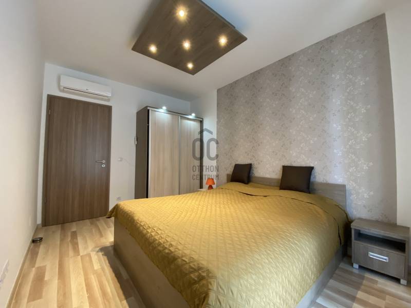 A Corvin sétány egyik igényes, modern társasházában, a 6. emeleten eladó egy 65 m²-es, nappali + 2 külön nyíló hálószobás, kiváló állapotú lakás, 11 m²-es, valóban használható erkéllyel, csendes, belső kertre néző tájolással.Ha a munkádban már elég a projektekből, határidőkből és döntési kényszerekből, akkor a lakáskeresésnél valószínűleg nem erre vágysz. Nem felújításra, nem bútorozásra, nem „majd egyszer kész lesz” megoldásokra.Ha így van, akkor jó helyen jársz: ez egy kész, prémium élethelyzet.Itt minden adott ahhoz, hogy egyszerűen csak megérkezz és élj.Amit ez a lakás nyújt:•igényes, modern társasház, szép, tágas közös terekkel•nappali + 2 külön nyíló, ablakos hálószoba•külön fürdőszoba és külön WC•teljes bútorzattal eladó – azonnal költözhető•nagy méretű, nem keskeny erkély, ahol az étkezőasztal kényelmesen körbeülhető•hatodik emelet, világos terek, kertre néző kilátás•házközponti fűtés egyedi mérőkkel, hőszivattyús rendszer•alacsony rezsi•lakójellegű, rendezett társasház, ahol alapvetően hosszútávra tervező bérlők és tulajdonosok élnek•több külföldi lakó is él a házban – csendes, kulturált, nemzetközi közeg, amelyet sokan kifejezetten értékelnek a Corvin sétány pezsgése mellett.Parkolás – a mindennapok kényelmeA lakáshoz két teremgarázs tartozik, amelyek (a kettő együtt) 26 MFt-ba kerülnek. Ezek a lakással együtt, egységes csomagként kerülnek értékesítésre. A garázs itt nem extra, hanem az életminőség része.Itt nincs utcán körözés, nincs „majd találok valahol helyet”.Hazajössz, legurulsz a mélygarázsba, és beállsz a saját, jól megszokott helyedre – ez a fajta nyugalom a városi életminőség része.Ez az ingatlan azoknak szól, akik pont egy ilyen prémium csomagot keresnek:kész állapotot, átgondolt alaprajzot, nyugalmat, kényelmet és kiszámíthatóságot a város egyik legjobb lokációjában.Megtekintés egyeztetéséhez kérem hívjon telefonon!