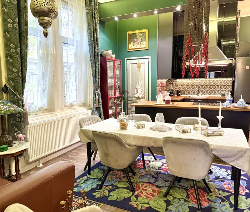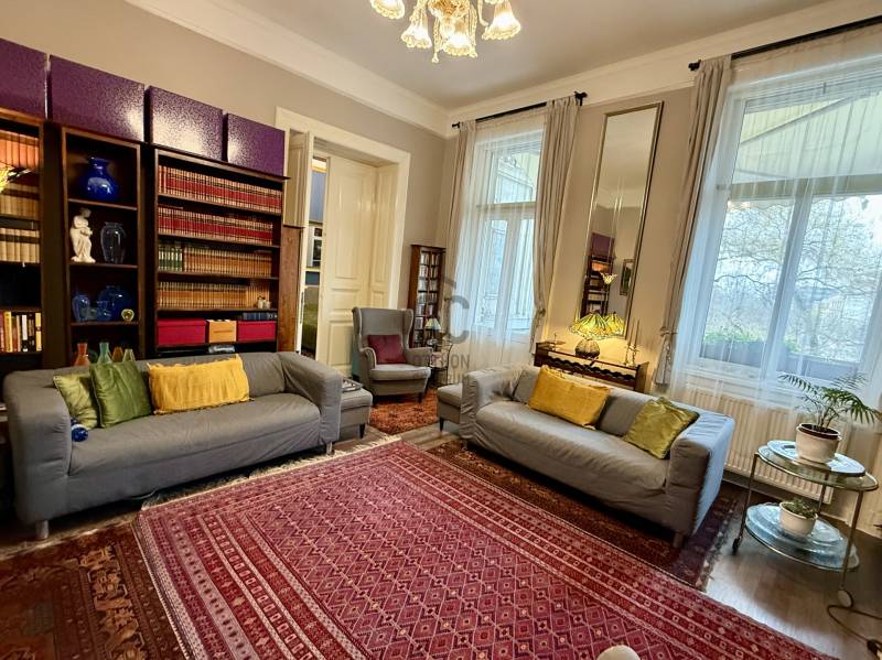 A város egyik legkarakteresebb, századfordulós palotájában kínáljuk megvételre ezt a kivételes hangulatú, több mint százéves építészeti részleteket megőrző, tágas terekkel rendelkező műtermi lakást. Az ingatlan igazi kuriózum: a felső szinten kapott helyet a ház eredeti műterme, amely óriási belmagasságával és monumentális ablakfelületeivel páratlan fényt és atmoszférát biztosít. A napfény gyönyörűen járja be a teret, így alkotói munkához és nagyvonalú nappaliként is tökéletes.LAKÁS - 2. emelet, 195 m² nettó alapterület + 2 db utcai nézetű erkély - Belső kétszintes, a felső szinten található a 48 m²-es műterem monumentális ablakokkal és kiváló fényviszonyokkal- Az alsó szint alapterülete 116m², ezen a szinten található az amerikai konyhás nappali és további 3 szoba + 2 fürdőszoba+WC, továbbá kamra és egyéb helyiségek- Alsó szint belmagassága: 3,9m- Műterem belmagassága: 5,1m- A lakás 2018-ban gépészeti felújításon esett át, minden vezeték és a fűtésrendszer korszerűsítve lett- Közös költség: 53.625 HUF/hó - Fűtése: egyedi cirkó gázfűtés TÁRSASHÁZ- 1898-ban építették eklektikus stílusban, a lakás a villatulajdonos saját lakrésze volt- Eredetileg elegáns panziónak épült, egészen az 1930-as évekig fogadta a vendégeket- A tégla építésű társasház lift nélküli, 14 lakásos- A felújítási - és karbantartási munkálatok rendszeresek, a lakóközösség kultúráltAmennyiben további információra van szüksége, vagy megtekintené az ingatlant, várom hívását, kérem, keressen bizalommal!