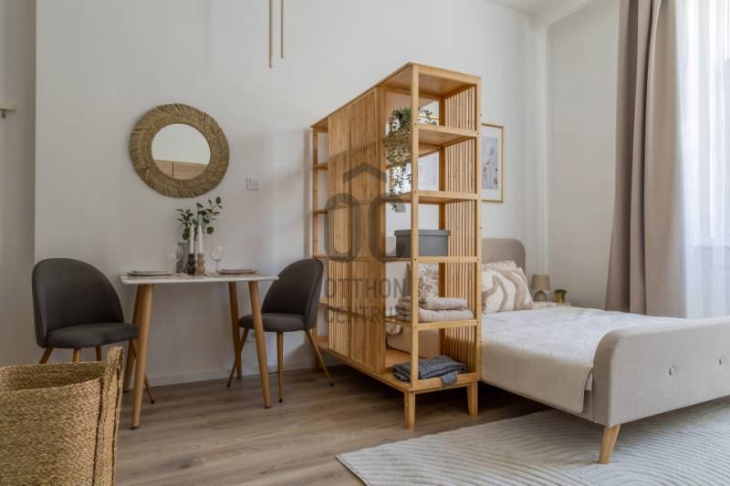 Kiadó egy 4. emeleti, 2 m2-es, teljes körű felújításon átesett stúdió lakás Budapest VII. kerületében, az Erzsébet körúttól egy ugrásra az Almássy térnél.A ház rendezett és tiszta, elhelyezkedése kiváló, hiszen pár perc az 1-es metró (Vörösmarty utca), a 2-es metró (Blaha Lujza tér), a 4-6-os villamos, valamint több busz és troli.Leginkább fiatal egyedülállóknak, esetleg pároknak kitűnő megoldás, a legtöbb egyetem/főiskola, színházak, egyéb szórakozási lehetőség könnyedén elérhetők.A lakás praktikus és világos, nagyon kellemes élettér, egy négyes lakóegység egyik eleme.A rendelkezésre álló tér kihasználását igényes és minőségi bútorozás segíti.A lakás rövid határidővel birtokba vehető.A szerződéskötéshez 1 havi bérleti díjjal és 2 havi kaucióval kell rendelkezni, valamint szükség lesz közjegyzői kiköltözési nyilatkozatra.A minimum bérleti idő 12 hónap, kisállatot hozni és a lakáson belül dohányozni nem lehet.További információkért keressen akár hétvégén is!Az időpont egyeztetése minimum 1-2 nappal korábban szükséges.