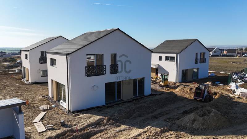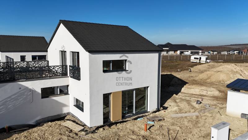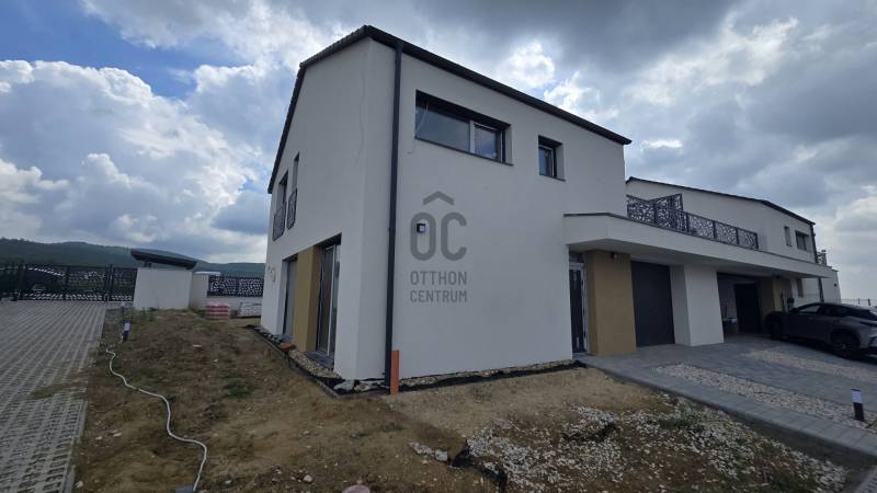 A budai agglomeráció egyik legkedveltebb településén Budajenőn természetközeli környezetben kínálunk megvásárlásra egy újépítésű családi házat 433 nm-es telekkel. A lakóépület kizárólag a földszinten érintkezik a szomszéddal, itt is a két garázs fala ér össze, az emeleten egyáltalán nincs közös fal. 4 házból álló mini lakópark kulturált, intelligens szomszédokkal, már csak ez az egy ingatlan eladó. A belső elosztás tágas, a mai modern igényeknek maximálisan megfelelő, hatalmas üvegfelületek minden helyiségben. Korszerű technológia, magas műszaki tartalom: megújuló energia, hőszivattyús fűtés (Bosch, padlófűtés, mobil appról vezérelhető), mennyezethűtés, napelem előkészítés solar átvezető cseréppel, H tarifa, kamera, riasztó, klíma előkészítés, elektromos autó töltő előkészítés, 20 cm grafitos homlokzati szigetelés, 3 rétegű üvegezésű ablakok, redőny előkészítve, extra tetőszigetelés, fűtött garázs, térkövezett autóbeálló. A ház belső kétszintes, a földszinten a tágas, kertkapcsolatos nagy konyha-étkező-nappali a lakás központja, ezen a szinten kapott helyet egy háló vagy dolgozószoba, egy mosdó, nagy előszoba és a garázs, ahol tárolásra is marad hely. Az emeletre kényelmes lépcső vezet, ahol 3 nagy méretű hálószoba, két fürdőszoba és egy zöld tetőterasz került kialakításra. Burkolatok, szaniterek, belső ajtók megadott kereteken belül választhatók, a vételár részét képezik. Befejezés, birtokbaadás 2-3 hónapon belül. Használatbavételi engedély megvan, az ingatlan tehermentes, hitelezhető. A településen sok a gyermekes, fiatal család, a helyi óvoda kifejezetten jó. Igényes, szép kivitelezés.