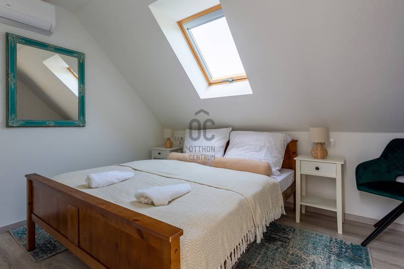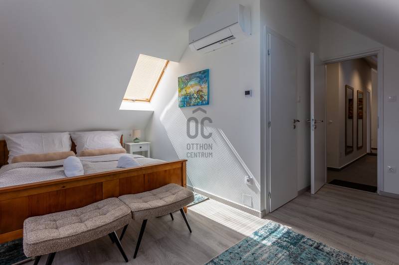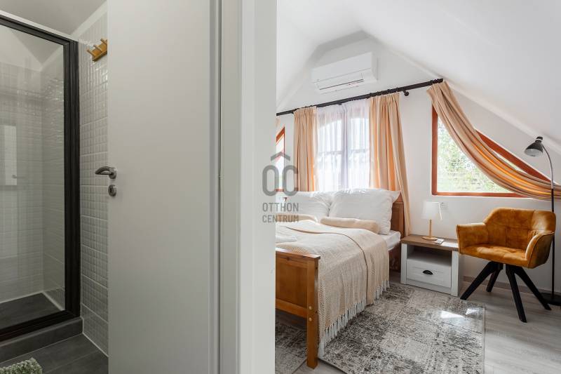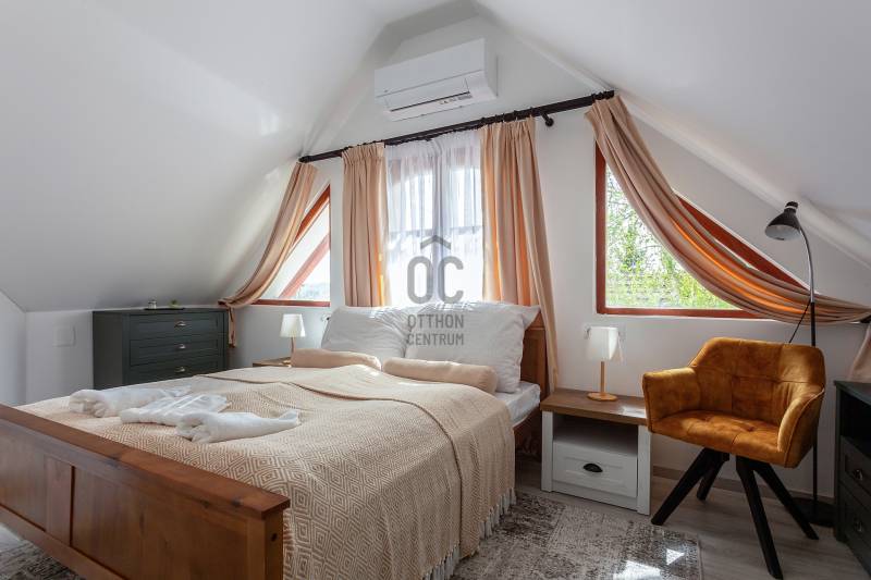 A Balaton északi partján, a Káli-medence egyik legbájosabb településén kínálunk megvételre egy teljes körűen felújított, két szinten elhelyezkedő, szálláshely üzemeltetésére kiválóan alkalmas ingatlant.Az ingatlan lakóház besorolású, de kialakítása és felszereltsége révén már jelenleg is vendégházként üzemel, így az új tulajdonos akár azonnal folytathatja a működtetését.Telek terület: 1460 m²Alapterület: 221 m²Szobák száma: 7Fürdőszobák száma: 5JELLEMZŐK ÉS ELRENDEZÉS – vendégfogadásra optimalizálvaFöldszint: Első lakóegység: gépesített, tágas konyha-étkező, hálószoba, fürdőszoba, külön mosókonyha/tároló Fedett télikert: világos közösségi tér nagy üvegfelületekkel – ideális reggeliztetéshez vagy vendégrendezvényekhez További helyiségek: közös használatú konyha, szoba, fürdőszoba, gépészeti helyiség, közlekedőEmelet: 3 külön bejáratú vendégszoba, mindegyik saját fürdőszobával és WC-vel Tágas közlekedő/közösségi térModern felszereltség, alacsony üzemeltetési költség Elektromos padlófűtés + hőtárolós melegvíz rendszer Hűtő-fűtő klíma Kályha az első lakóegységben Napelemrendszer 3×32 A áramerősség 12 cm külső hőszigetelés Hőszigetelt fa nyílászárók Cserépfedésű, szigetelt tetőVendégcsalogató külső környezet: Elektromos kapu, térkövezett előudvar Gondozott, parkosított hátsó kert: kerti tó, gyümölcsfák, füves pihenőrész Szauna és kültéri dézsafürdő a vendégek kényelméért Minőségi bútorok, napernyők, nyugágyak, hinta és kerti garnitúrák az udvaronKiváló befektetés – Azonnal működtethető turisztikai egységEz az ingatlan nem csupán egy lehetséges otthon – egy kész vendéglátóhely, ahol az új tulajdonos egy jövedelmező családi vállalkozást vihet tovább. A Balaton és a Káli-medence folyamatos turisztikai vonzereje garantálja a szezonon túli kihasználtságot is.Vegye fel velünk a kapcsolatot még ma – ragadja meg ezt az egyedülálló lehetőséget!Ideális választás magánszemélyeknek, befektetőknek, de akár cégek számára is üdülőként vagy prémium vendégházként.
