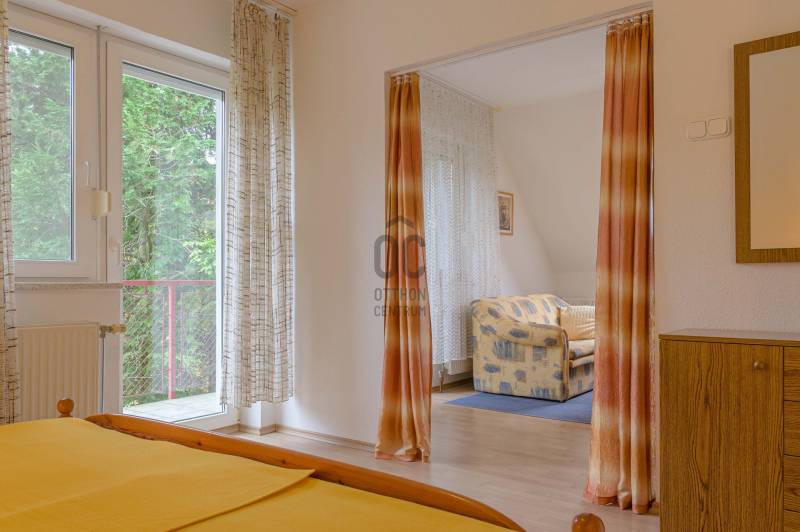 Ez az ingatlan Hévíz egyik legkeresettebb részén található, ahol a természet közelsége és a városi élet nyújtotta kényelem tökéletes összhangban van. A csendes, zöldövezeti elhelyezkedés nyugalmat biztosít, mégis minden fontos szolgáltatás elérhető közelségben van.A ház főbb jellemzői:- 819 m²-es telken helyezkedik el- Tágas, világos terek, ideális nagycsaládosoknak vagy vendégek fogadására- Igényesen kialakított, gondozott kert, akár 6 autó fogadására is alkalmas- Az épület az 1980-as évek elején épült, folyamatosan karbantartott állapotban vanSzintenkénti elrendezés:Szuterén (akadálymentesített): hálószoba, nappali, étkező, konyha, kamra, fürdőszoba, külön WC, átjáró a garázsbaElső emelet: 2 különálló apartman (mindkettő hálószobával, nappalival, fürdőszobával)Második emelet: 2 lakrész (hálószoba, nappali erkéllyel, fürdőszoba, közösen használható konyha)Garázs felett napozóterasz került kialakításraMűszaki jellemzők:- Fűtés: gázkazán, radiátoros rendszerrel +cserép kályhák, működőképes kémények alternatív fűtéshez- Melegvíz ellátás: villanybojler + gázbojler- Nyílászárók: korszerű, műanyag szerkezetű- Parkolás: kétállásos garázsban- Bőséges tárolóhelyiségekLokáció és környezet:A világon is egyedülálló hévízi gyógytó közelsége évente turisták ezreit vonzza a városba, így az ingatlan kiemelkedő kiadási potenciállal rendelkezik. Ráadásul a közelben található a Zala Springs Golf Resort, így a sport és aktív pihenés kedvelőinek is kiváló választás.Legyen szó állandó otthonról, nyaralóról vagy befektetésről, ez az ingatlan mindhárom célra tökéletes lehetőséget kínál!Ne hagyja ki! Amennyiben az ingatlan felkeltette érdeklődését, kérem, keressen bizalommal a megtekintés egyeztetéséhez!Ez az ingatlan a \"Felező csomag\" megbízási portfólióhoz tartozik. Részletek az Otthon Centrum weboldalán.