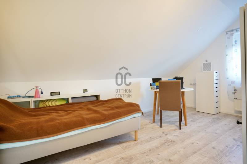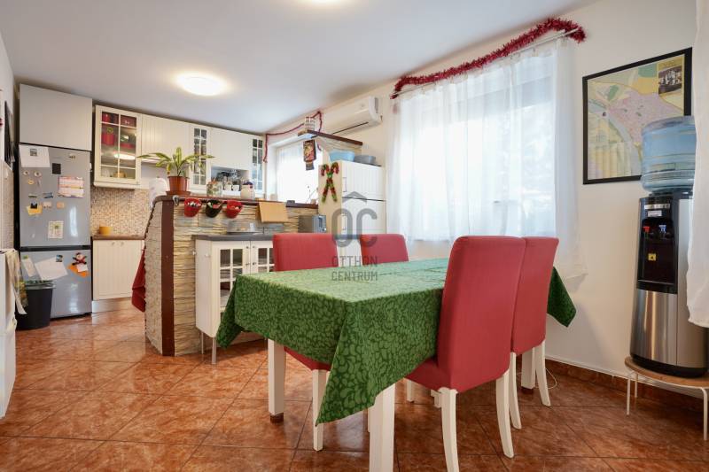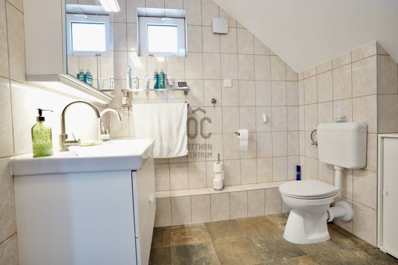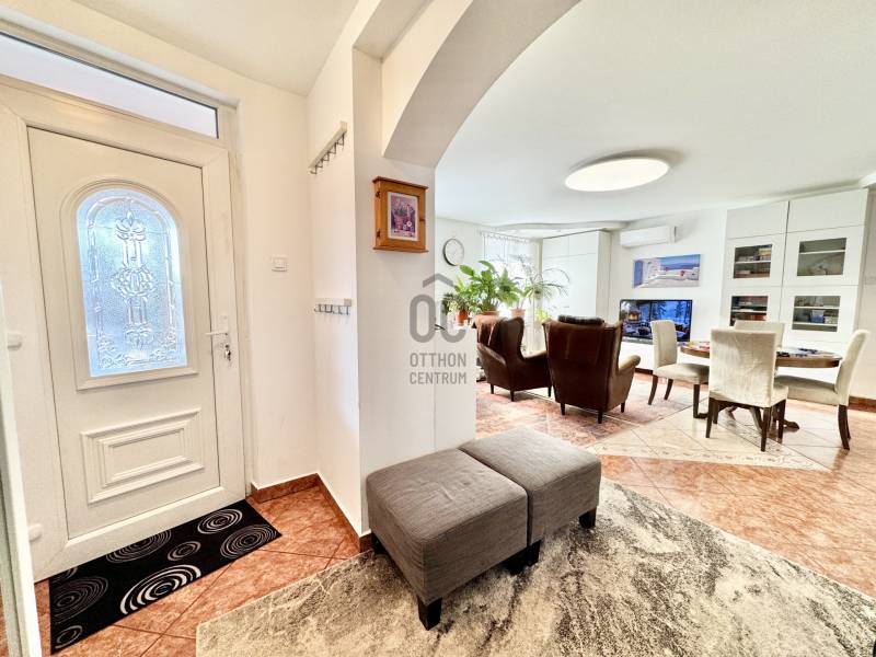 Családbarát, felújított otthon Vácon – nyugalom, tér és modern komfort egy helyenVác csendes, kertvárosi környezetében eladó egy világos, tágas, igényesen felújított családi ház, amely ideális választás gyermekes családok számára, mindössze 20 percre Budapesttől. Az amerikai konyhás nappalival és négy különálló hálószobával kialakított ingatlan kiváló térszervezésének köszönhetően hosszú távon is kényelmes otthont biztosít, akár több generáció együttélésére is.A 2005-ben épült, masszív Porotherm téglaház 2022 óta folyamatos korszerűsítésen esett át. A 255 cm-es belmagasság és a jó tájolás világos, barátságos belső tereket eredményez. A mindennapi komfortot tovább növeli, hogy minden hálószoba, valamint a nappali is klimatizált, így az év minden szakában kellemes hőmérséklet biztosított.Az energiatakarékos üzemeltetésről 10 kW-os, szaldós elszámolású napelemes rendszer, automata pelletkazán szobatermosztáttal, radiátoros központi fűtés, valamint a földszinten padlófűtés gondoskodik. A melegvízellátást 200 literes Hajdu indirekt tárolós bojler biztosítja, az elektromos hálózat korszerűsített. Az ásott kútról működő öntözőrendszer alacsony fenntartási költségek mellett teszi gondozhatóvá a kertet.A földszinten egy tágas nappali–étkező–amerikai konyha alkotja a családi élet központját, továbbá egy külön hálószoba saját fürdőszobával, amely ideális lehet nagyszülőnek, vendégnek vagy otthoni irodának. Előszoba, kamra és külön WC egészíti ki a szintet. Az emeleten három jól bútorozható hálószoba, fürdőszoba és közlekedő található, míg az alagsor tárolóként és kazánházként funkcionál.A sík, körbekerített kert biztonságos játszóteret kínál gyermekeknek, miközben gyümölcsfák, bogyós növények és szőlő teremtik meg a természetközeli életérzést. A fedett (13 m²) és a tágas, nyitott (35 m²) terasz ideális helyszín családi és baráti összejövetelekhez. Az udvaron 8 m²-es tároló, egy 3,5×7 méteres gépkocsibeálló, valamint további parkolási lehetőség áll rendelkezésre.Az M2-es autóút mindössze 2 percre található, így Budapest gyorsan elérhető, miközben a környék nyugodt, rendezett, kifejezetten családbarát. Iskola, óvoda, bevásárlási lehetőségek rövid időn belül elérhetők, így ez az ingatlan valóban ideális választás azoknak, akik hosszú távra keresnek biztonságos, szerethető otthont.A ház megvásárlásához a megfelelő önerővel „már rendelkező”, de ezenfelül akár ***banki hitelfelvétellel, akár *** CSOK+ , akár ***lakáskassza megtakarítással és akár a ***babaváró program keretében felvehető / felhasználható pénzösszegből vásárló személyek megkeresését is szeretettel várom!Ha a leírtak és a látottak alapján felkeltettem az érdeklődését, keressen bizalommal akár hétvégén is!***Az igénylési / felhasználási feltételekkel kapcsolatban, valamint ezek ügyintézésben is, az Otthon Centrum hitelközvetítő munkatársával együtt, készséggel állok az Ön szíves rendelkezésére!