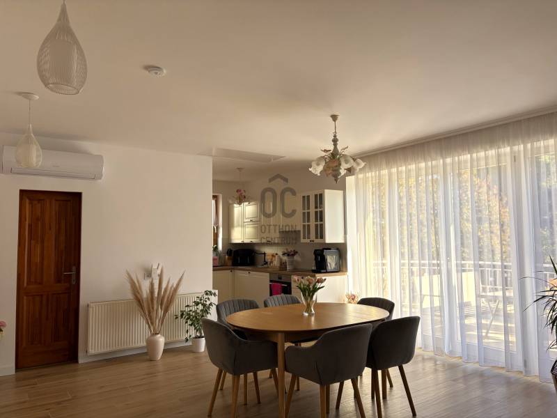 Ez a XVI. kerületi családi ház nem felújítási projekt, hanem egy kész, komfortos élettér, amelyet 2023-ban teljeskörűen felújítottak, így az új tulajdonosnak már csak költöznie kell.Az elosztás tudatos és jól működik a mindennapokban. két külön nyíló hálószoba és egy tágas, világos nappali alkotja az otthon központját, ahol minden helyiségnek megvan a maga funkciója – felesleges kompromisszumok nélkül.________________________________________Amit az első pillanattól érezni lehet•2023-ban teljeskörű felújításon átesett ingatlan•Azonnal költözhető állapot•Nappali-központú, élhető elosztás•Két szeparált hálószoba•Garázs és pince a kényelmes parkoláshoz és tároláshoz•Terasz, amely a kertre néz, nem az utcára – így a pihenés valóban csendes•Gondozott kert, intim használattal•Kiszámítható, jól karbantartott műszaki állapotA ház kialakítása azok számára ideális, akik nem szeretnének átalakításokkal, felújítással, szervezéssel foglalkozni, hanem egy átgondolt, jól működő otthont keresnek.________________________________________Külső–belső egyensúlyBár a ház könnyen megközelíthető, jó közlekedésű helyen található, a kert és a terasz belső irányba tájolt, így a mindennapi használat során nyugodt, intim környezetet biztosít.Ez a kettősség – jó elérés és csendes pihenőtér – ritka és valódi érték.________________________________________ÖsszegzésEz az ingatlan azoknak szól, akik értékelik a kész állapotot, a kényelmet és az átgondolt részleteket, és egy olyan otthont keresnek, ahol a mindennapok már az első naptól gördülékenyen működnek.Megtekintés előzetes időpont-egyeztetés után.Ez az ingatlan a \"Felező csomag\" megbízási portfólióhoz tartozik. Részletek az Otthon Centrum weboldalán.
