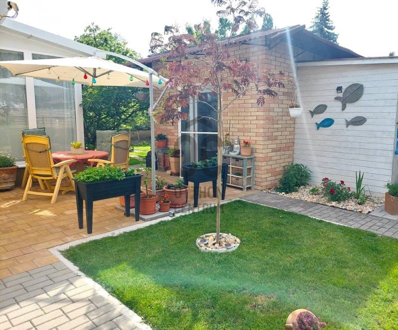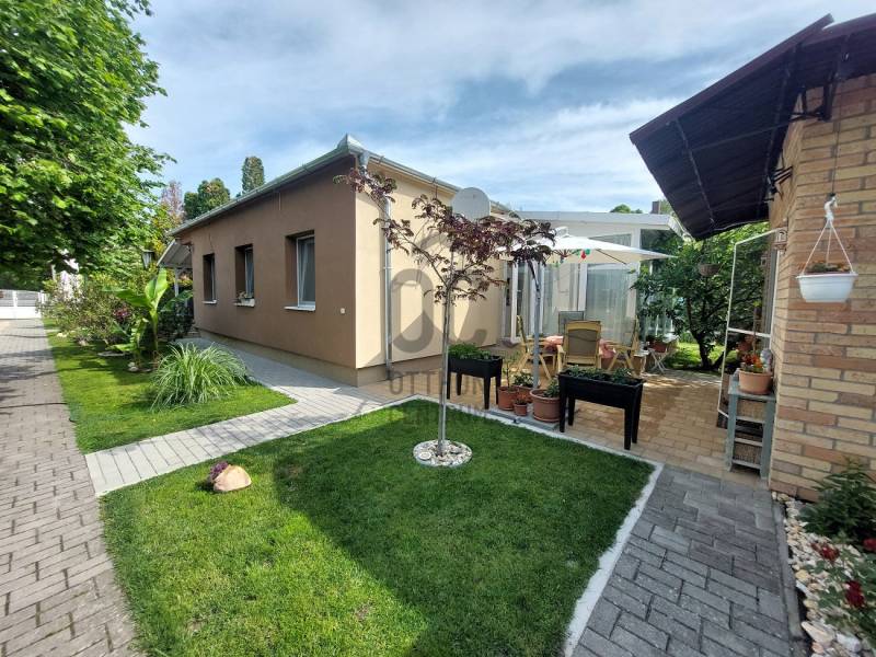 A strandtól csupán 400 méterre kínálunk eladásra egy nappali + 3 hálószobás ingatlant.Az ingatlan lakó besorolású, így alkalmas az Otthon Start hitelre.A ház a 70-es évek végén, téglából épült. Pár éve külső-belső felújításon esett át, új nyílászárókat, kívülről pedig szigetelést is kapott.Energetikai besorolása A+. Fűtése, hűtése hőszivattyús klímával és H tarifával megoldott. A tetőn napelemek kerültek felhelyezésre.A nappaliból egy hatalmas 35m2-es, árnyas teraszra léphetünk ki, amely növényekkel határolva ad intimitást az utca felől.Az épület hátsó részén gyönyörű, három oldalról, üveggel körülvett étkező található, amely alkalmas nagyobb vendégség fogadására is.A 720m2-es kert szépen gondozott, dísznövényekkel tarkított. Locsolása fúrt kútból megoldott.A hátsó részen gyümölcsfákkal beültetett. Almafák, szilva, barack, cseresznye, mellettük fűszernövények, paradicsom.A kertben még egy különálló 21m2-es épület is található, amely egy teljes értékű lakórésznek felel meg, konyhával, fürdőszobával felszerelt.A kisházhoz egy tároló és egy fedett beálló is csatlakozik.Gyalogosan vagy biciklivel, Balatonföldvár központja, a Yacht kikötő, a csodás Kvassay sétány, éttermek, bevásárlási lehetőség is percek alatt elérhető.Felkeltettem érdeklődését?Hívjon, akár hétvégén is!