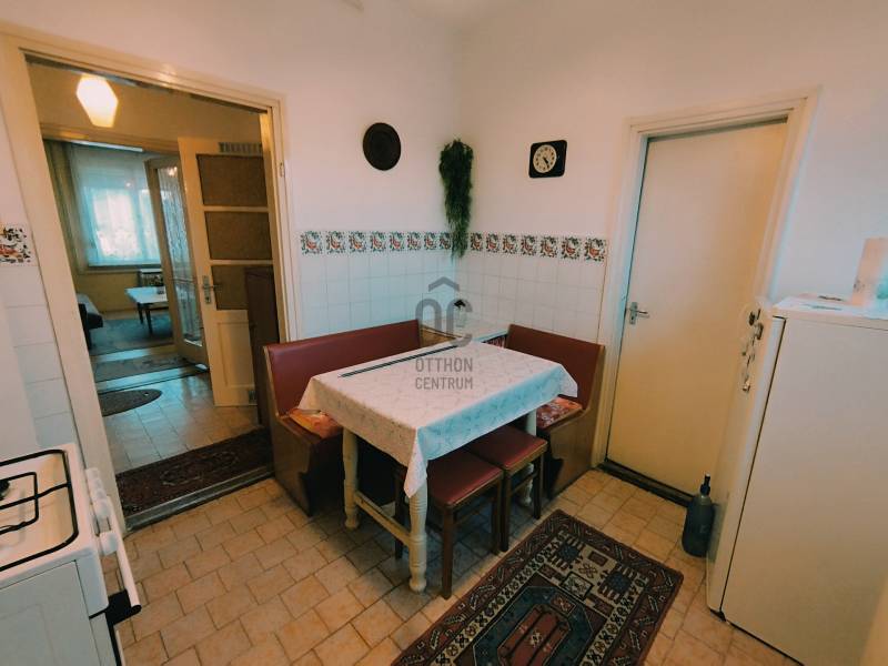 Egy részben felújított, de még ráfordítást igénylő ingatlant kínálok eladásra Nagykőrösön, a kórház közelében.Az utcafronti, kádár kocka stílusban épült házban egy nagy nappali, kettő szoba, konyha, kamra, fürdőszoba, előszoba és közlekedő helyiség került kialakításra.MŰSZAKI JELLEMZŐK- 1975-ben épült- beton alap- tégla falazat- hasznos alapterület: 81 m²- belmagasság: 275 cm- telek mérete: 652 m²- külön nyíló szobák- a szobák laminált parketta borítású- a többi helyiség járó lappal burkolt- külső és belső nyílászárók eredeti fa szerkezetű, normál állapotú- ablakok redőnyel felszereltek- régi villany- meleg vizet gázbojler biztosítja- jó tetőszerkezet- 2,80 m² fedett terasz- egyéb tárolók és ólak- udvaron fúrt kút- tető cseréppel fedettFŰTÉSAz otthon melegét gázfűtés biztosítja, működőképes konvektorok segítségével.Alternatív fűtésként a nagyobb szobában biztosított egy hangulatos cserépkályha is.BIRTOKBA ADÁSAz ingatlan jogilag rendezett, tehermentes, birtokba vétele a teljes vételár kifizetése után azonnal lehetséges!Amennyiben felkeltette figyelmét az ingatlan, keressen bizalommal!Elérhető vagyok a hét bármelyik napján!A hirdetésben szereplő információk a megbízótól kapott adatok alapján készültek, pontosságukért felelősséget nem vállalunk!Irodánkban teljes körű ügyintézéssel, ingyenes és bankfüggetlen hitel közvetítéssel várjuk!#tégla #81m²#kettőszoba #nappali #gázkonvektor #KórházközelébenEz az ingatlan a \"Felező csomag\" megbízási portfólióhoz tartozik. Részletek az Otthon Centrum weboldalán.