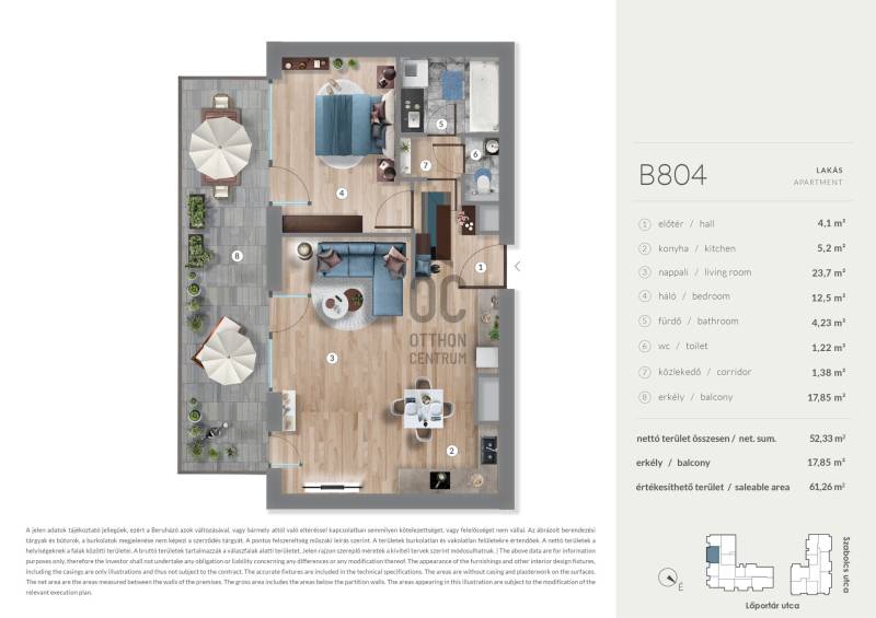 Projekt bemutatásaA kiváló elhelyezkedésű WestGate 4 lakópark a Dózsa György úttól és a Lehel úttól pár lépésre található, így a Belváros könnyedén megközelíthető autóval és tömegközlekedéssel egyaránt. A 4 ütemben épülő lakóparkban összesen közel 1000 lakás kerül megépítésre, melyből az első három ütem elkészültével több mint 700 lakás átadása már megtörtént.2-3-4 szobás lakástípusok elérhetőek, a csendes belső kertre néző családi otthontól a kisvárosias utcára néző lakáson keresztül az indusztriális-városi panorámát kedvelőkig mindenki megtalálhatja a hozzá illő ingatlant.A jelenleg legkorszerűbb hőszivattyús rendszer lehetővé teszi az otthonok energiatakarékos fenntarthatóságát. Lakásonként hőmennyiségméréssel ellátott felület fűtés-hűtés kerül kialakításra, interneten keresztül távolról elérhető és programozható, valamint kézi hőmérsékletállítási lehetőséggel,rejtett gépészeti vezetékekkel.A lakásokba okosotthon rendszer kerül beépítésre. Az okosotthon rendszer biztosítja a lakások magasabb szintű és hatékony üzemeltetését. A Vevőneklehetősége van három, különböző típusú okosotthon rendszer (alapcsomag) közül választani, amelyek egyike sem eredményezi a lakások vételárának növekedését.Igény esetén felár ellenében lehetőség van beépített bútorok megrendelésére is.A lakásokhoz mélygarázsban biztosított parkoló vásárolható, illetve emeleti tárolók is leköthetők.Extrák az épületben: közösségi nappali, könyvtár, közösségi autó, fészer és csomagpont valamint az összes lakás okosotthon-rendszerrel allátva kerül átadásra.Rohamosan fejlődő környék, remek befektetés!Fizetési ütemezés:10% - szerződéskötéskor90% - átadáskor (használatbavételi engedélyt követően)Várható átadás: 2027.12.31.