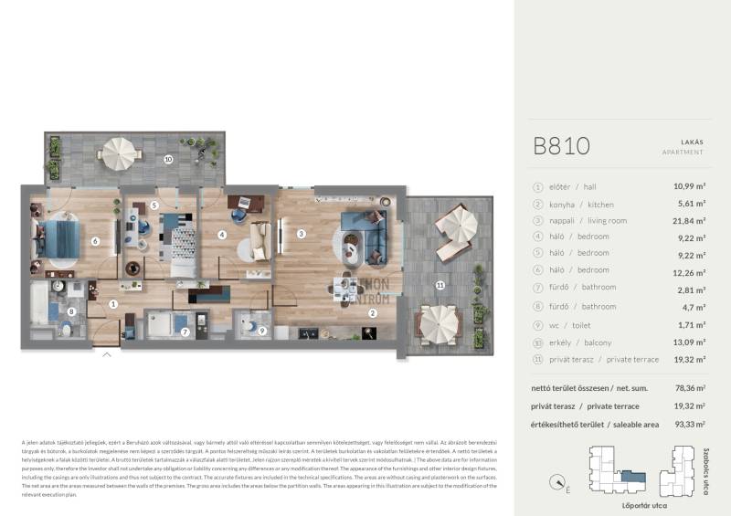 Erkély mérete: 32 m2