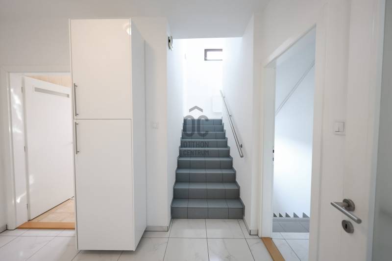 Kivételes lehetőség III. KERÜLET egyik legkedveltebb részén: eladó egy háromszintes, energiatakarékos, 2017-ben épült családi ház a Harsánylejtő I ütemében! A 374 nm hasznos alapterületű ingatlan igény szerint kétgenerációs otthonná is alakítható, így ideális választás nagycsaládosok, összeköltözők vagy akár vállalkozásra nyitott vevők számára is.Örökpanoráma, saját telek, természetközeli életérzésA 1034 nm-es, körbekerített, önálló telek elhelyezkedésének köszönhetően a házból lenyűgöző, örök körpanoráma nyílik a Pilisi Völgyre és a környező hegyekre. A déli tájolás bőséges természetes fényt biztosít egész nap, míg a hatalmas ablakfelületek, teraszok, és az 81 nm-es járható tetőkert különleges térélményt nyújtanak.Minőségi kivitelezés – földrengésbiztos szerkezetA ház építése során kizárólag válogatott, prémium minőségű anyagokat használtak. A főfalak 38 cm-es Porotherm KLIMA tégla, mely önmagában 8 cm-es hőszigetelést tartalmaz. Ezt egészíti ki a 3 cm-es levegőréteg és 5 cm vastag kőzetgyapot hőszigetelés. A födémek monolit vasbeton szerkezetűek, fokozott víz- és hőszigeteléssel.Átgondolt belső tér – maximális komfortAlsó szint: garázs (32 nm), 2 kisebb szoba, háztartási helyiség (vízkiállással)Földszint: amerikai konyhás nappali (Carrara márvány belső párkányokkal), dolgozószoba, tágas fürdőszoba (kádas)Emelet: 3 hálószoba, zuhanyzós fürdő, külön mosó- és szárítóhelyiség, nagy terasz növényágyásokkalTetőszint: járható tetőkert, kialakított növényágyásokkal – tökéletes relaxációs térModern technológia és biztonság6 kamerás megfigyelőrendszerKomplett riasztórendszer távfelügyelettelMotoros alumínium redőnyök, Hörmann biztonsági bejárati ajtó, távirányítású garázskapuKert és parkolásAz udvar részben térkövezett, fagyálló burkolattal ellátott. A belső garázs mellett fedett, külső beálló is rendelkezésre áll. A gondozott kert gyümölcsfákkal, bokrokkal, valamint egy praktikus kerti tárolóval egészül ki.Közlekedés és infrastruktúraBKV megálló: 5 perc sétaMÁV vasútállomás: 10 perc sétaA közelben óvoda, iskola, bevásárlási lehetőségek (plázák, boltok)- Felkeltettem érdeklődését? Hívjon bizalommal és válaszolok minden kérdésére.- Zuglói, vagy akár országos kínálatunkból megtaláljuk Önnek a legmegfelelőbbet.- Amennyiben jelenlegi ingatlana értékesítésében is segítségére lehetek, kérem, forduljon hozzám bizalommal!- Az ingatlanok megvásárlását ingyenes hiteltanácsadással és ügyintézéssel, valamint, igény esetén, korrekt ügyvédi háttérrel segítjük!- Ajánlatunk nem csak a nálunk vásárolt ingatlanok esetében érvényes. Hívjon, és mi megoldjuk minden ingatlanügyét.