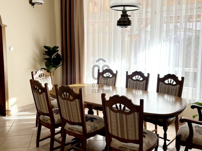 Baján, rendezett, családi házas övezetben, a város főterétől mindössze pár percnyi sétára kínálunk megvételre egy 543 nm-es telken, 1997-ben, saját részre épült, magas műszaki tartalommal és kimagasló minőségben kivitelezett családi házat.Az ingatlan Ytong falazattal, betongerendás, béléstestes födémmel, valamint hódfarkú cserépfedéssel épült. A külső és belső nyílászárók egyedi tervezésűek: a homlokzati fa ablakok kétrétegű üvegezéssel, a belső ajtók pedig tömör fából, ólomüvegezéssel készültek.A 188 nm-es lakótér rendkívül jól átgondolt elrendezésű:három külön nyíló hálószoba, intarziás parkettával burkolt nappali, étkező, teraszkapcsolatos konyha, bútorozott kamra, mosókonyha kényelmes padlásfeljáróval, valamint egy tágas fürdőszoba (zuhanyzóval, masszázsfunkciós sarokkáddal, WC-vel és bidével), továbbá egy külön WC–kézmosó kapott helyet.A fűtést kombi gázkazán biztosítja padlófűtéssel és lapradiátorokkal, kiegészítve egy fatüzelésű cserépkályhával. A hálószobák radiátoros fűtésűek és padlószőnyeggel burkoltak, a többi helyiség kerámialapos, padlófűtéses. A meleg vizet két villanybojler, a komfortot pedig nagy teljesítményű klímaberendezés és riasztórendszer szolgálja. Az ingatlan összközműves, 3×20 A elektromos kapacitással rendelkezik.A ház alatt egy 90 nm-es, angolaknás, szigetelt pince található, több tárolóval és külön konyhával – kiváló lehetőség hobby-, vendég- vagy akár vállalkozási célokra is.A gondozott kertben fedett autóbeálló és garázs (külön-külön egy autó számára), pázsitos udvar, díszkert, hangulatvilágítás, kerti csap, bográcsozó, és a kikapcsolódáshoz két fedett terasz került kialakításra.A környék rendezett, ingyenes parkolással és kiváló megközelíthetőséggel. A környéken minden fontos intézmény és szolgáltatás rövid sétatávolságon belül elérhető: üzletek, hivatalok, iskola, orvosi rendelő, patika, éttermek, kávézók...Az ingatlan tehermentes, térképészetileg rendezett és rövid határidővel birtokba vehető.A bútorzat külön megállapodás tárgyát képezheti.Ez az otthon ideális választás mindazok számára, akik minőségi kivitelezésű, időtálló, belvárosközeli családi házat keresnek nyugodt környezetben.Megtekintésért és további információért keressen bizalommal!
