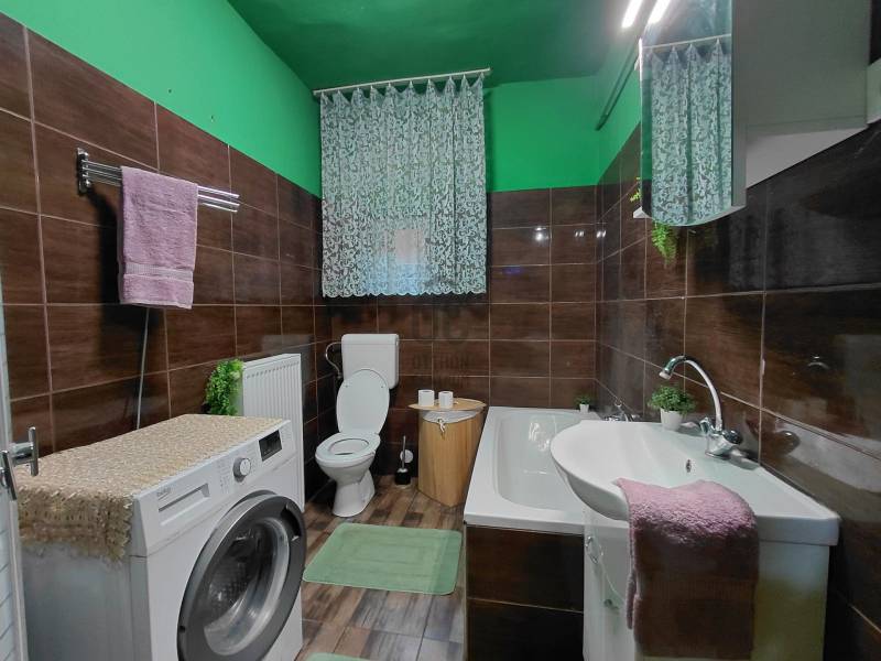 Eladó felújított, összközműves családi ház Heves kertvárosias részén.Ahol a masszív szerkezet és a modern kényelem találkozik.Eladásra kínálunk egy a 60-as években épült, 81 m²-es, 3 szobás családi házat közel, pár percre a nagy bevásárlóközpontokhoz.A ház tehermentes.Főbb jellemzők:-Építés éve: 1960-as évek, tető: stabil cserépfedés-Szerkezet: 56 cm vastag vályog fő- és válaszfalak, hozzáépített fürdő és konyha 38 cm-es téglafalakkal-Nyílászárók: 3 rétegű műanyag ablakok, műanyag bejárati ajtók-Fűtés: új kondenzációs gázkazán, modern teljes felújított rendszer-Fürdőszoba: egyben WC-vel, zuhanyfülke és kád-Külön étkező-Szobák: utcafronti szobák külön nyílóak, dél-keleti tájolású, laminált parkettával és padlószőnyeggel-Homlokzat: felújított, új simítás és festés-Udvaron fúrt kútKiegészítő helyiségek és udvar:-2 m²-es tároló műanyag ajtóval-12 m²-es kazánház-17 m²-es garázs-Polikarbonát előtetős hátsó terasz-Udvaron kerti sütögető és fedett fa kerti kiülő-A ház melletti járda, terasz és a melléképületek környéke járólapozott, esztétikus és könnyen tisztán tarthatóEz az ingatlan ideális választás családoknak, akik stabil szerkezetű, felújított, mégis karakteres házat keresnek, ahol a modern és hagyományos elemek harmonikusan ötvöződnek. A kert, a kerti kiülő és a sütögető további kényelmet és kikapcsolódást biztosít.Akár teljes berendezéssel is eladó értékegyeztetéssel.Ne hagyja ki ezt a kivételes lehetőséget – tegyen látogatást, és váljon ennek az otthonnak az új tulajdonosává!Hitelre, támogatásra van szükséged?Az Otthon Centrum egyedülálló, bankfüggetlen megoldásokkal támogat:CSOK, Falusi CSOK, Babaváró, személyi kölcsön, jelzáloghitel – 18 bank ajánlatai egy helyen, díjmentes ügyintézéssel!Adásvétel esetén ügyvédünk végigkíséri a teljes folyamatot.#Heves#HevesMegye#EladóHáz#CsaládiHáz#Tehermentes#StabilSzerkezet#Felújított#KondenzációsKazán#ÚjFűtésrendszer#ÚjVízVillany#3RétegűNyílászárók#Energiatakarékos#Összközműves#BevásárlóközpontKözelében#KényelmesÉlettér#Garázs#Kazánház#KertiKiülő#Sütögető#RendezettUdvar#ÉrtékállóIngatlan#Kulcsrakész