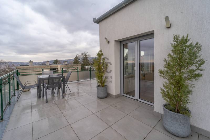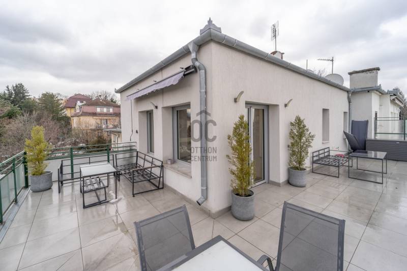 Rózsadombon kínálunk eladásra egy különleges adottságú lakást, amelyhez egy valóban privát tetőterasz és ikonikus budapesti panoráma tartozik. A tér és a kilátás együttese nyugalmat, szabadságot és azt a magától értetődő exkluzív budai életérzést adja, amely egyszerre van a város felett, mégis szervesen benne.A lakás a társasház csendes felső szintjén helyezkedik el, ahonnan páratlan kilátás nyílik a Gellért-hegyre, a Budai Várra, a Parlamentre, a Halászbástyára és Budapest ikonikus városképére. A 48 m²-es tetőterasz ritka panorámás adottság: tökéletes helyszín pihenéshez, barátok fogadásához, esti beszélgetésekhez, naplementékhez – igazi városi menedék a város felett.Az ingatlan prémium kivitelben, tudatos tervezéssel került felújításra, megőrizve a patinás, Bauhaus jellegű épület karakterét, miközben minden részletében a mai kor igényeire reflektáló modern műszaki tartalommal rendelkezik. Magas minőségű Internorm nyílászárók kerültek beépítésre alumínium külső borítással és háromrétegű üvegezéssel, alumínium rolóval és szúnyoghálóval. A teljes terasz üvegfelülete megújult, napellenző került felszerelésre, valamint háromfázisú áram áll rendelkezésre, kültéri szauna előkészítéssel.A lakás fűtése korszerű elektromos padlófűtéssel megoldott, amely tovább erősíti a letisztult, komfortos életteret. A konyha magasfényű, osztrák gyártású bútorzattal készült, beépített AEG és Bosch gépekkel; a konyhasziget a mindennapok természetes középpontja, ahol a design és a funkcionalitás magától értetődően találkozik.A kis lakásszámú társasház, a presztízs környezet és a gyors belvárosi elérés együttese olyan városi életteret hoz létre, amely egyszerre reprezentatív és élhető, nyugodt és inspiráló. Ez a lakás nem alkalmazkodni akar, hanem hangulatot és életstílust kínál.Ez az ingatlan nem versenyez másokkal – elhelyezkedése és panorámája nem reprodukálható.Itt a minőség alapérzés. A tér, a panoráma és a környezet együtt hozzák létre azt az exkluzív budai életérzést, amely nem hasonlítható, nem ismételhető – egyszerűen csak jelen van.