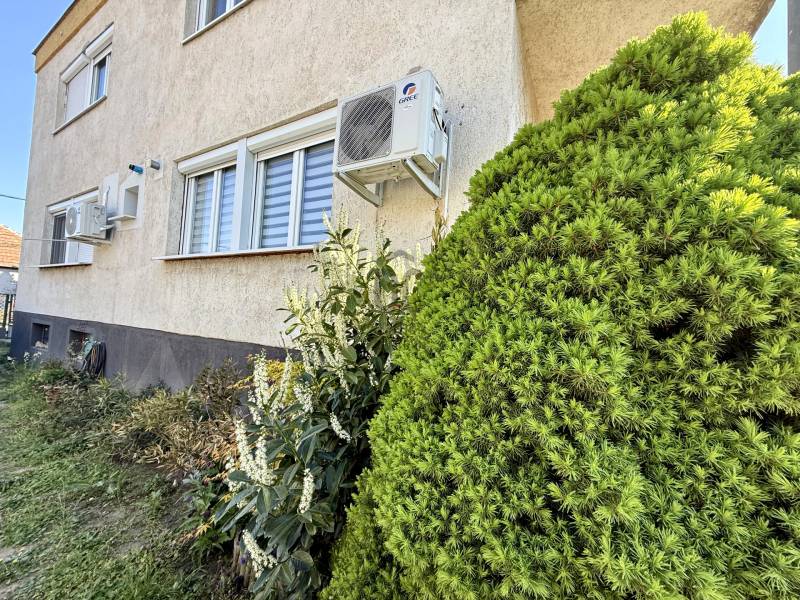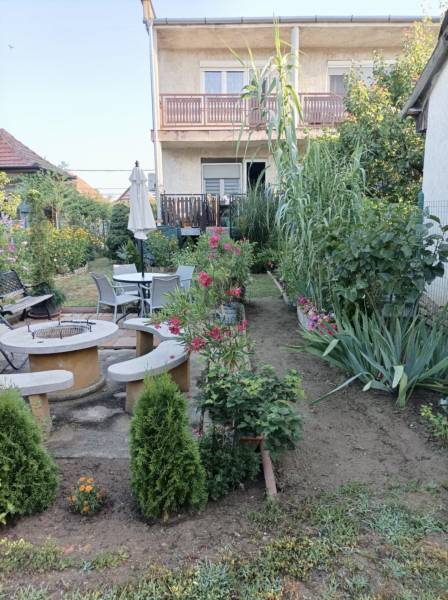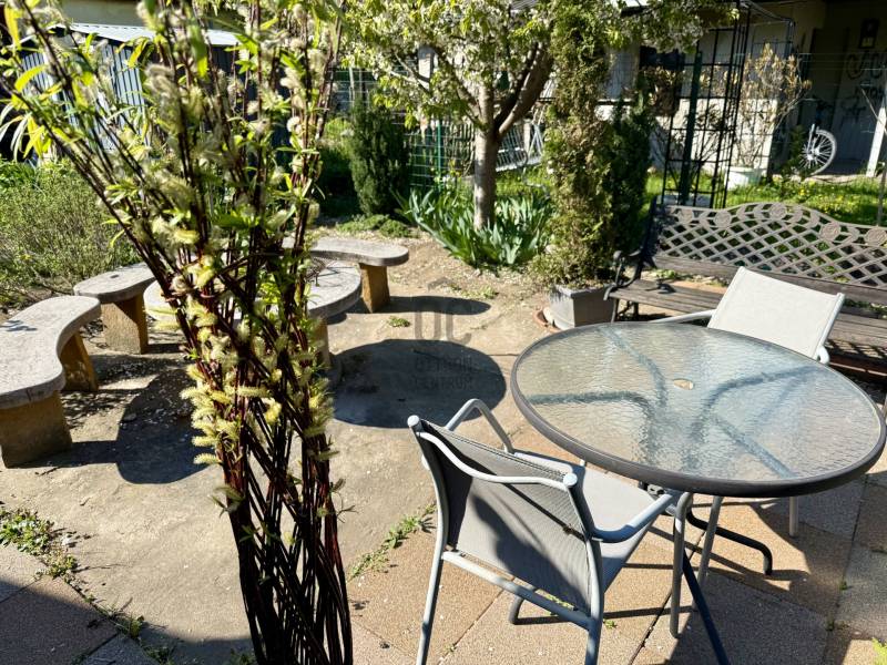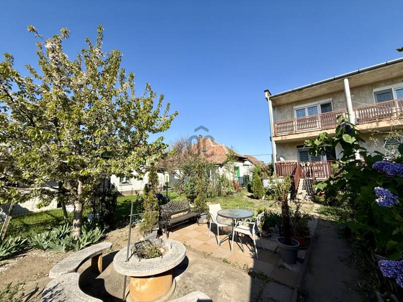 XVII. kerületben Rákoscsaba kertvárosi, családi házas részén (Szent László telep), csendes mellékutcában kínáljuk megvásárlásra egy kétlakásos társasház FELÚJÍTOTT földszinti, 83 nm-es, nappali-konyha-étkező + 3 egész szobás, kertkapcsolatos, napfényes lakását. Az ingatlanhoz 260 nm-es kizárólagos használatú, leválasztott kert, valamint a pinceszinten 1 kisebb személyautó parkolására alkalmas garázs és tároló tartozik (21nm), itt van víz és lefolyó, így mosókonyhaként is használható.Jellemzők: -déli tájolás, világos lakás-műanyag nyílászárók redőnnyel, szúnyoghálóval-kondenzációs kazán fűtésre és melegvízre-hűtő-fűtő klíma-felújított fürdőszoba, konyha, szobákban új laminált padló-bejárati ajtó, belső ajtók cserélve lettek-elektromos hálózat, vízcsövek szintén cserélve-falakon egyedi, kézzel készült gyönyörű festés található, mely igazi éke a lakásnak-16 nm-es terasz a nappaliból, közvetlen kertkapcsolat-telken belül felszíni autóbeálló 1-2 autónak-csendes, családi házas környék-buszmegálló, bevásárlási lehetőség rövid sétára