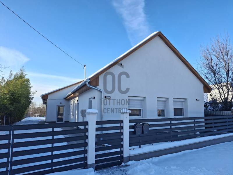 Minőségi anyagokkal épült, korszerűen felszerelt otthon eladó!Főbb jellemzők:- hasznos alapterület: 69 nm- tégla falazat- Az ingatlan stabil sávalapozással (tégla és kavicsbeton) készült, falazata POROTHERM 30 NF téglából épült, amely kiváló hőtartást és tartósságot biztosít.- A nyeregtetős, fenyő szarufás fedélszék láng- és gombamentesítő kezelést kapott, így hosszú távon is megbízható szerkezetet nyújt.- Kiemelkedő szigetelés – alacsony rezsi- Talajnedvesség elleni védelem: 1 réteg GV-4 bitumenes lemez- Külső fal hőszigetelés: 15 cm Austrotherm EPS- Lábazati szigetelés: 10 cm Austrotherm XPS- Födém szigetelés: 15 cm Austrotherm AT-N 100- Nyílászárók: -e gyedi gyártású, 3 rétegű hőszigetelt műanyag ablakok és ajtók- Fa szerkezetű beltéri ajtók, esztétikus kivitelbenGépészet és műszaki tartalom:- Villanyszerelés: műanyag védőcsőben vezetett réz kábelezés, érintésvédelmi előírásoknak megfelelően- H tarifás hűtő-fűtő klíma- Fűtés: BAXI kondenzációs kazán + padlófűtés- Előkészítve: kamera, riasztó és elektromos kapu vezetékezéseExtrák:- Teljes körűen felújított ingatlan- A lakáshoz tartozik egy könnyűszerkezetes garázs- Modern, korszerű műszaki megoldásokHa hirdetésem felkeltette figyelmét, keressen bizalommal!A hirdetésben szereplő információk a megbízótól kapott adatok alapján készültek, pontosságukért felelősséget nem vállalunk! Irodánkban teljes körű ügyintézéssel, ingyenes és bankfüggetlen hitel tanácsadással várjuk!