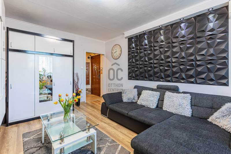 Kívül panel, belül igazi álomotthon ez a lakás!Egy különleges ingatlant kínálunk Újpalota közkedvelt részén, a Kőrakásparkban. A lakás 2020--ban teljes felújításon esett át, de tulajdonosai azóta is folyamatosan szépítették, modernizálták.Az 53 m2-es, nappali + 2 hálószobás lakásban felújításra került az elektromos hálózat, 2 hűtő-fűtő klíma került beszerelésre. Kialakításra került egy nagy ablakos, mordern, gépesített konyha, kis étkezősarokkal. A fürdőszoba és a külön helyiségben lévő mellékhelyiség is átépítésen esett át. Mindenhol új, modern burkolatok, desing elemek kerültek beépítésre. A lakásban egy különálló, rendkívül praktikus háztartási helyiség is kialakításra került, ahol a mindetn elnyelő polcok mellett, a mosó- és szárítógép, valamint a hűtőszekrény is helyet kapott.A lakás előtt leválasztára került egy folyosószakasz, amely praktikus előszobaként funkcionál.A lakáshoz tartozik egy nagy méretű saját tároló a pincében, melyet az új tulajdonos tovább bérelhet.A közösköltség 23 ezer forint, mely tartalmazza a felújítási alapot és a pince díját is. Az egyedi mérésű házközponti fűtésnek köszönhetően rendkívül alacsony a rezsi!Az ingatlan egy szépen karbantartott, rendezett, liftes, jó lakóközöséggel rendelkező társasház 4. emeletén található. A ház teljeskörű felújításon esett át a panelprogram keretében, melynek költségei már nem terhelik az ingatlant. A házban kamerarendszer is üzemel. Kiváló elhelyezkedés. A lakótelep ezen részén (ingyenes övezetben) mindig akad parkolóhely, de a környékbeli bekerített parkolókban is 20-25 ezer forint havidíjért bérelhetők helyek. Bevásárlási lehetőség (Aldi, Lidl, Pólus Center, Ázsia Center), oktatási- és egészségügyi intézmények, gyógyszertár, tászótér, szánkódomb, kiserdő, kutyafuttató 5-10 percek sétasátolságon belül elérhetők.Kiváló közlekedés. Nappali és éjszakai buszok (7, 7E, 8E, 108E, 133E, 196, 196A, 296, 130, 46, 146), valamint a 69 villamos megállója 5 perc sétára. A lakás kíváló állapotú, azonnal költözhető! Hitelre is megvásárolható! Nézze meg még ma! Nem fog csalódni! Tényleg olyan, mint a képeken!