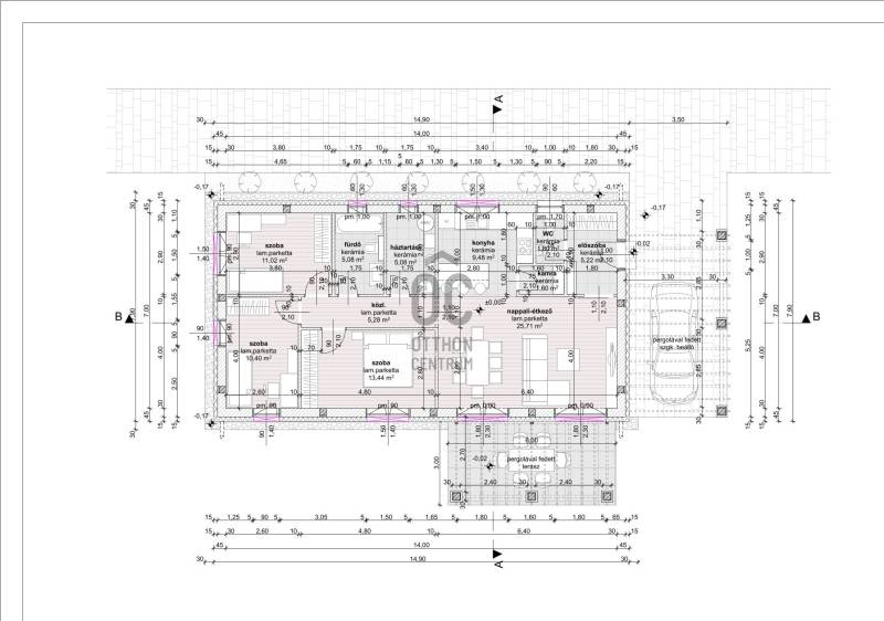 Székesfehérváron Maroshegyen, 434 m2-es saját telekkel, ÚJ ÉPÍTÉSŰ, DK-i tájolású nettó 94,1 0 nm-es 3 hálószobás, nappali-konyha-étkezős, teraszos családi ház eladó!Rövid műszaki leírás: 4. ház* Telek:434 nm* Amerikai konyhás nappali étkezővel, 3 szoba, fürdőszoba, 2 illemhelység, terasz, 1 fedett kocsibeálló* 94,1 nm hasznos alapterület + 18 nm-es pergolával fedett terasz* A ház 30 cm vastag Leier 30 N+F tégla falazattal, 15 cm homlokzati hőszigeteléssel, 12 cm aljzatszigeteléssel, 30 cm üveggyapot padlásszigeteléssel épül* Fűtés: padlófűtés, az épület hőellátása levegő-víz hőszivattyúról történik* Melegvizet elektromos kazán biztosítja* Tető 30 fokos nyeregtetős, fa födémes, beton tetőcseréppel fedett* Igény esetén napelem rendszer is telepíthető* Fehér 3 rétegű műanyag nyílászárók kerülnek beépítésre, redőnnyel, szúnyoghálóval felszerelve* Elektromos hálózat 3*25A* Burkolat: konyhában, közlekedő részen, fürdőszobában, mellékhelyiségben járólap, nappaliban, szobákban laminált parketta, terasz térkövezett* Épület körül kavics járda szegélykő, külső terasz térkő burkolat + gépkocsibeállóKörnyék:Az épületek családi házas, kertvárosias környezetben helyezkednek el. A környéken bölcsőde, óvoda, iskola, orvosi rendelő, gyógyszertár és bevásárlóközpont is megtalálható.A részletekkel kapcsolatban keressen bizalommal!Ha a vásárláshoz a jelenlegi ingatlana eladására van szükség, akkor abban is szívesen együttműködöm Önnel!Amennyiben hitelre van szüksége, az Otthon Centrum az ország egyik legnagyobb és legmegbízhatóbb hitelközvetítőjeként, teljes körű és díjmentes hitel ügyintézéssel áll ügyfelei rendelkezésére.