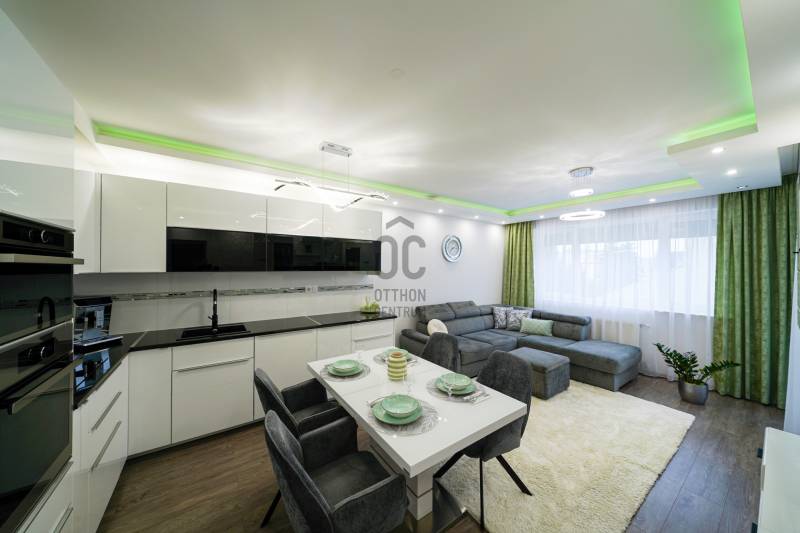 Eladó egy bruttó 62 nm-es (erkéllyel együtt), 3 szobás, nagy erkélyes, kiváló elosztású lakás a XIII. kerület egyik legkedveltebb, nyugodt, zöld és csendes részén, egy 36 lakásos, rendezett társasházban.!!Teljes bútorzattal, berendezéssel eladó!!PRÉMIUM EXTRÁK – TELJES BERENDEZÉSSEL!- egyedileg gyártott, beépített gardróbok minden szobában – rengeteg tárolóhely- teljesen gépesített konyha: Whirlpool beépített hűtő, sütő, mikro, mosogatógép, indukciós főzőlap- Porta Doors beltéri ajtók- 9 ponton záródó, tűzvédelmi bejárati ajtó- műanyag nyílászárók, elektromos alu redőnyökkel- nagy teljesítményű Gree inverteres klíma a nappaliban és a hálóban- extra méretű radiátorok, plafonig érő törölközőszárítós radiátor a fürdőben- külön vezérelhető padlófűtés a konyhában és a fürdőben- LED világítás, spotok, elegáns csillárok- riasztórendszerKÖTELEZŐEN CSOMAGBAN:Autóbeálló + tároló +10 M Ft – biztonság, kényelem, értékállóság egyben.Elhelyezkedés:Zöld, csendes környezet, mégis kiváló infrastruktúra – ideális választás családoknak, pároknak vagy befektetésnek is.Ez nem csak egy lakás – ez egy életérzés.Ne maradj le róla, ritka lehetőség a XIII. kerületben!