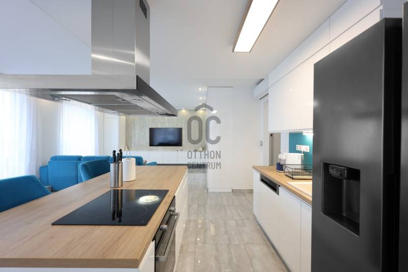 Fedezd fel ezt a kivételes, családok számára ideális lakást Budapest 14. kerületében, Alsórákoson! Ez az újszerű ingatlan nemcsak hogy kiváló állapotban van, de minden részletében a prémium kivitelezés és az egyedi tervezés jegyében készült. Az ingatlan alapterülete 119 nm, négy tágas szobával és két fürdőszobával rendelkezik, így bőven van hely a család minden tagjának. Az amerikai konyhás, konyhaszigetes nappali világos és barátságos, ideális helyszín a közös családi programokhoz. A modern beépített bútorok és szekrények, valamint a motoros redőnyök a kényelmet és a praktikumot szolgálják. A lakás különlegessége a 120 nm-es terasz, ahol a gyönyörű panoráma mellett élvezheted a friss levegőt és a csendes kertvárosi környezetet. A terszon körben nagy méretű kaspók kerültek , telefonról vezérelhető locslórendszerrel. Az ingatlan tehermentes, így azonnal birtokba vehető, és a házközponti fűtés egyedi méréssel biztosítja a kényelmes hőmérsékletet, míg a klíma a nyári hónapokban nyújt kellemes hűsítést.Az ingatlan vételára tartalmazza a teljes bútorzatot is. A környék ellátottsága kiváló, a közeli boltok, iskolák és óvodák mindössze pár percnyire találhatóak, így a mindennapi ügyintézés rendkívül egyszerű. A kitűnő közlekedésnek köszönhetően könnyedén elérheted a város többi részét, legyen szó autós vagy tömegközlekedési lehetőségekről. A csendes utcák és a biztonságos környezet ideális helyszínt biztosítanak a családosok számára, ahol a gyerekek biztonságban játszhatnak. Ez a lakás nemcsak otthon, hanem befektetési lehetőség is, hiszen a környék folyamatosan fejlődik, a kereslet pedig stabil. Van lehetőség kettő darab gépkocsibeálló helyet vásárólni teremgarázsban. Ha kérdéseid lennének az ingatlannal kapcsolatban, vagy szeretnéd megtekinteni, bátran keress meg! Bizalommal állok rendelkezésedre, hogy segítségedre legyek a legjobb döntés meghozatalában. Ne hagyd ki ezt a páratlan lehetőséget, hiszen egy ilyen ingatlan ritkán kerül a piacra!