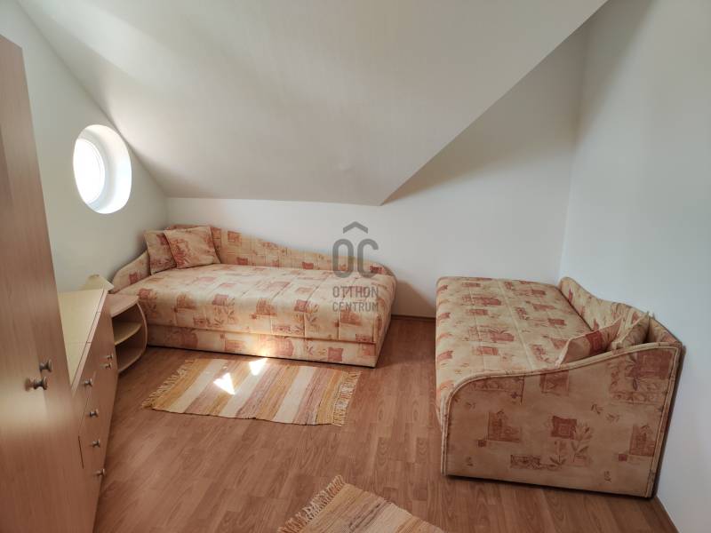 Zalakaroson, egyedi tervezés alapján minőségi anyagokból épült házat kínálok eladásra.A fürdőváros egyik kedvenc utcájában közel a központhoz, mégis csendes helyen. Ráadásul a keleti oldalról gyönyörű kilátás nyílik a környező zalai dombságra.2000-ben, 30 cm-es Porotherm téglából épült és 10 cm-es homlokzati hőszigetelést is kapott.Ezeknek köszönhetően a cirkó gázkazánnal és cserépkályha fűtéssel gazdaságosan fenntartható.A nyílászárók műanyagok, a hálószobákban szúnyoghálók is vannak.A gondos tulajdonosoknak köszönhetően a folyamatosan karbantartott épület állapota újszerű.Helyiségei: 1 nappali konyhával és étkezővel (itt található a cserépkályha is), 4 szoba, 2 fürdőszoba, gardrób helyiség, lépcsőház,tároló, garázs. A hátsó fedett terasz mellett épített grillező található.A kert gondozott, díszcserjékkel és gyümölcsfákkal.A vételár a megkímélt és minőségi anyagokból készült berendezéseket is tartalmazza.Előre egyeztetett időpontban megtekinthető, várom megtisztelő hívását!Az adatok kizárólag a megbízóink által rendelkezésünkre bocsátott információkon alapulnak.Fentiekre tekintettel, az adatok teljességéért, helyességéért és aktualitásáért nem vállalunk felelősséget.Az árváltozás, adatmódosítás és közbeni értékesítés jogát fenntartjuk, mindezekért jogi felelősséget nem áll módunkban vállalni.