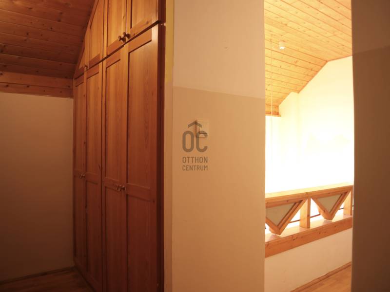 Csendes, zöld, családias környezetben lakóparki lakás eladó!Kőszegen, csendes, családias lakóparkban vált eladóvá ez a kertkapcsolatos, kertre néző, 180 nm-es, egyedi tervezésű, kétszintes sorházi lakás.Az ingatlan Kőszeg kedvelt lakóövezetében, csendes, nyugodt környezetben, a belvároshoz közel helyezkedik el egy 4 lakásból álló sorházban.A lakás földszintjén előszoba, konyha, étkező, nappali, egy hálószoba, egy kisebb fürdőszoba, kazánház, kamra és tárolóhelyiségek kaptak helyet. A nappaliból és az étkezőből jutunk a két teraszra, onnan pedig a kizárólagos használati joggal rendelkező, jól szeparált, 542 nm-es parkosított kertbe.Szép kivitelű, kényelmes lépcső vezet az emeletre, ahol 5 hálószoba, 2 fürdőszoba, egy gardróbszoba van, valamint a folyosón beépített szekrény szolgálja a tárolási lehetőséget. A galéria jellegű folyosóról beláthatjuk a díjnyertes tervezésnek köszönhető izgalmas, napfényes tereket.Az ingatlan hőszigetelt műanyag nyílászárókkal szerelt, a fűtésről és a melegvíz-ellátásról egy puffertartállyal kiegészített kondenzációs gázkazán gondoskodik.A ház előtt 2 gépkocsi számára biztosított a parkolás lehetősége, vagy akár fedett parkoló is kialakítható az épület mellett.A lakás átlagos állapotú, igény szerint felújítandó, remek adottságokkal bíró ritkaság az ingatlanpiacon.Kiváló lehetőség nagycsaládosoknak, összeköltözőknek, de akár önálló családi ház alternatíváját keresőknek is. Számos lehetőséget rejt magában ez a különleges tervezésű ház, mely csak Önre vár, hogy új élettel töltse meg napfényes tereit!További információkért és megtekintési időpont foglalásáért kérem, hívjon bizalommal!Hitelre van szüksége? Az Otthon Centrum az ország egyik legnagyobb és legmegbízhatóbb hitelközvetítőjeként, teljes körű és díjmentes hitel ügyintézéssel, biztosításkötéssel áll rendelkezésére! Kérje személyre szabott ajánlatunkat Kollégáinktól!Válassza ki az Önnek legmegfelelőbbet!
