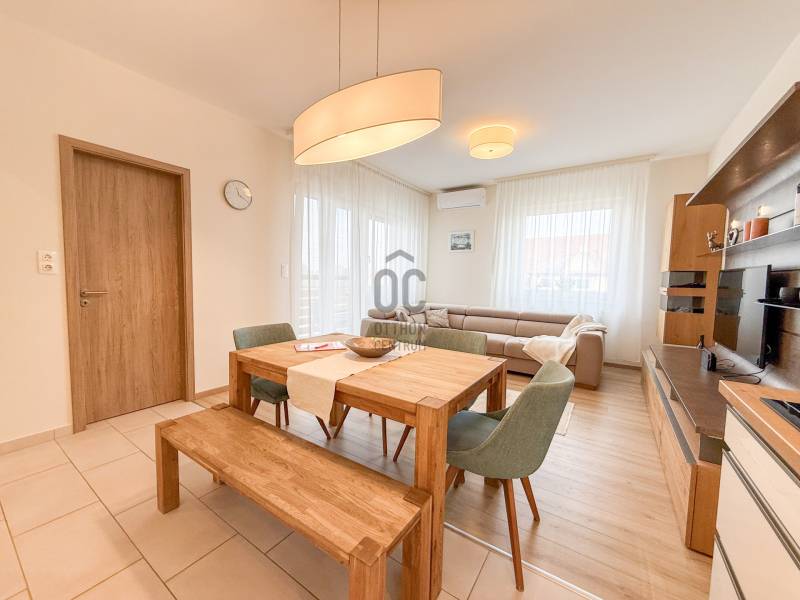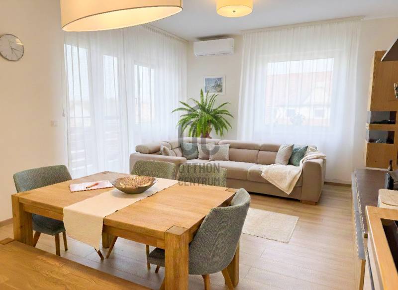 Prémium minőségű, teljesen berendezett, alig lakott lakás eladó Hegykőn !Hegykő kedvelt, nyugodt részén, Soprontól mindössze 17 km-re, 2020-ban épült, modern társasházban kínálunk megvételre egy rendkívül igényesen kialakított, azonnal költözhető lakást. Főbb paraméterek:Alapterület: 71 m²Emelet: 1. emeletElrendezés: amerikai konyhás nappali , 2 hálószoba, 2 erkély, külön WC, kamraFűtés: házközponti fűtés ( Hibrid hőszivattyú, gáz ) , padlófűtéssel, radiátorokkalHűtés: klímaberendezésParkolás: saját gépkocsi-beálló ( +2,9 M Ft )Állapot: újszerű, prémium kivitelezés, minőségi anyagokkal, berendezéssel.✨ Amitől igazán különleges:- Teljes berendezéssel és bútorzattal eladó – csak költözni kell ( tényleg teljes berendezéssel, beleértve mosó és szárítógépet bútorokat, MINDENT! )- Igényes konyhabútor Bosch konyhagépekkel ( sütő, mikró, kerámia főzőlap, elszívó , mosogató, hűtő ) - Modern, letisztult belső design- Minőségi bútorok, burkolatok és egyedi megoldások- Világos, jól élhető terek- Műanyag külső nyílászárók, 3 rétegű üvegezéssel,- Motoros, alumínium redőnyök- Kiváló energiahatékonyság, alacsony fenntartási költségek- A lakást alig lakták, csak időszakos tartózkodásra használták. ElhelyezkedésHegykő kiváló infrastruktúrával rendelkező, folyamatosan fejlődő település, termálfürdőjéről és nyugodt környezetéről ismert. Ideális választás állandó lakhatásra, nyaralónak vagy befektetésnek is egyaránt hiszen a jelenlegi tulaj vissza is bérelné.ÖsszegzésEz a lakás tökéletes választás azok számára, akik modern, igényes otthont keresnek kompromisszumok nélkül, és fontos számukra a jó környezet és akár az azonnali költözés lehetősége.Hitelre van szüksége??Az Otthon Centrum az ország egyik legnagyobb és legmegbízhatóbb hitelközvetítőjeként, teljes körű és díjmentes hitelügyintézéssel, biztosításkötéssel áll rendelkezésére!Kérje személyre szabott ajánlatunkat Kollégáinktól!