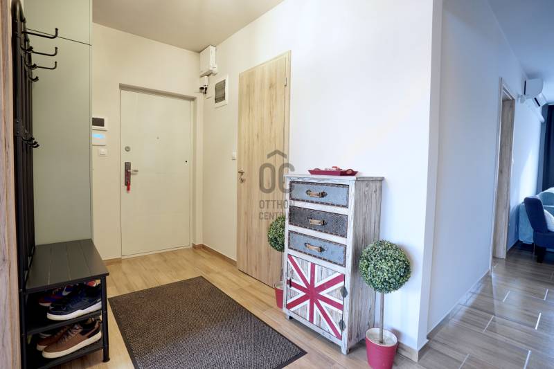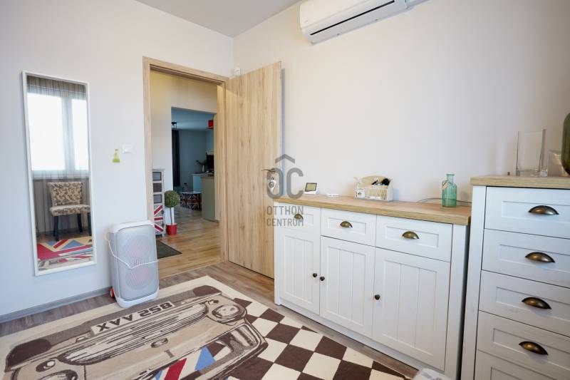 Modern, újszerű lakás Kispest kertvárosában – saját beállóval, elektromos autó töltési lehetőséggel.Budapest XIX. kerületében, Kispest kertvárosi részének csendes, rendezett utcájában, egy 2022-ben épült, mindössze 6 lakásos modern társasházban eladó egy 78,43m²-es, kiváló állapotú, lakás.Az ingatlan ideális választás családoknak vagy azoknak, akik nyugodt környezetben, mégis jó infrastruktúra mellett keresnek modern otthont.A lakás elosztása kifejezetten praktikus: tágas, világos amerikai konyhás nappali, 3 külön nyíló hálószoba, valamint 2 fürdőszoba WC-vel (egy kádas és egy zuhanyzós).A kényelmet és az alacsony fenntartási költségeket padlófűtés, minden helyiségben hűtő-fűtő klíma, valamint korszerű műszaki tartalom biztosítja.A biztonságról riasztórendszer és videós kaputelefon gondoskodik.Főbb extrák:elektromos alumínium redőnyökszúnyoghálókcsendes belső kert használatamagasföldszinti elhelyezkedéselektromos autó töltési lehetőségA lakáshoz saját udvari gépkocsibeálló tartozik, melynek megvásárlása kötelező, 3,9 M Ft értékben.További, külön megvásárolható lehetőségek: 10 m²-es tároló, önálló helyrajzi számmalbruttó 86 m²-es zárt teremgarázs, szintén külön helyrajzi számon ennek ára 39,9M.-FtEz az ingatlan ritka lehetőség a környéken: modern, újszerű, kis lakásszámú társasházban, kiváló elosztással és extra felszereltséggel.Közelében minden megtalálható, ami fontos a hétköznapokban, tömegközlekedése is kiváló.Amennyiben kérdése lenne, vagy szeretné megtekinteni személyesen is, kérem hívjon bizalommal, várom.Teljeskörű pénzügyi és jogi háttér-szolgáltatással várom kedves ügyfeleimet.