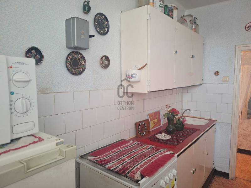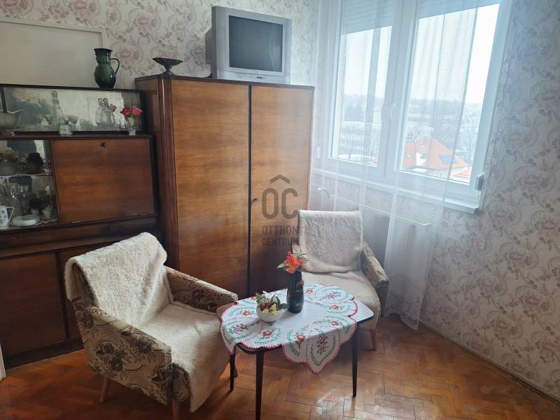 Eladó Tapolca Nyugati városrészében egy 2 szobás, 4. emeleti tégla lakás, rendezett tulajdoni viszonyokkal!Az ingatlanról:Alapterület: 55 m2Helyiségek: Előszoba, Konyha, Kamra, 2 Szoba, Fürdő + WC, ErkélyÉpítési mód: TéglaFűtés: Távfűtés, egyedi mérés nélkülKözművek: Víz, Villany, Csatorna bevezetve, Gáz nincsNyílászárók: részben műanyag, részben faÁllapot: Átlagos állapotúEmelet: 4. emelet (zárószint)Közös költség: 12500 FtTovábbi információ:Az ingatlan rendezett, zárt lépcsőházas társasházban van, csendes környezetben.Tartozik hozzá egy közös tároló, melyet 3 lakás tulajdonosai használnak közösen.Az ingatlan tehermentes.Az épület külső állapota jó, 2 évvel ezelőtt a tető megújult, víz szigetelés megtörtént.Amennyiben felkeltettem érdeklődését, keressen bizalommal!
