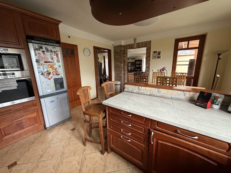 Biatorbágy Bia városrészében, nyugodt, családbarát környezetben kínálunk megvételre egy önálló, kétszintes, 225 m²-es családi házat, amely egy 453 m²-es, gondozott telken helyezkedik el.Az ingatlan 2001-ben épült, masszív Porotherm 30-as téglából, 5 cm-es hőszigeteléssel, valamint külső kisméretű tégla burkolattal, amely nemcsak tartósságot, hanem egyedi, időtálló megjelenést is biztosít a háznak.A tetőszerkezet jó állapotú, cserépfedéssel ellátott. A fűtésről karbantartott Baxi gázkazán gondoskodik, radiátoros hőleadással, így a ház fenntartása kiszámítható és gazdaságos.Az otthon meleg hangulatát az egyedileg gyártott fa nyílászárók adják, kétrétegű üvegezéssel, jó műszaki állapotban.Elrendezés:Földszint:• Előszoba• Fürdőszoba WC-vel• Tágas, jól használható konyha kamrával, étkezővel• Világos nappali• Az étkezőből és a nappaliból is közvetlen kijárat nyílik a teljesen üvegezett teraszra, amely akár téli kertként is kiválóan funkcionál• A teraszról tolóajtón keresztül elérhető a hátsó udvar• 31 m²-es házkapcsolatos garázsEmelet:• 3 nagyméretű szoba, melyek közül az egyik jelenleg két külön szobára lett osztva• Fürdőszoba WC-velA kert rendezett, automata locsolórendszerrel ellátott, ideális helyszíne családi programoknak, pihenésnek vagy baráti összejöveteleknek.Ez az ingatlan kiváló választás mindazok számára, akik tágas, jól átgondolt elrendezésű, minőségi anyagokból épült otthont keresnek Biatorbágy egyik legkedveltebb részén.? Érdemes személyesen is megtekinteni – ez a ház igazán élhető!