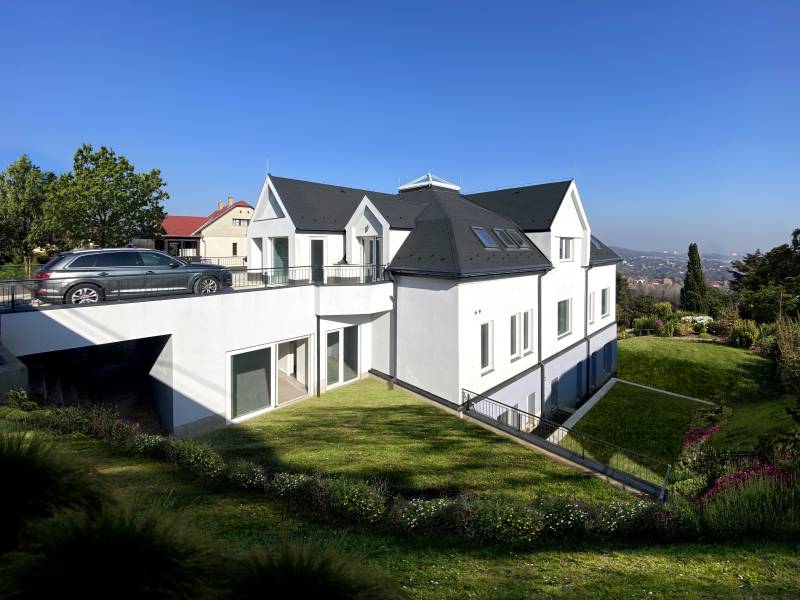 EXKLUZÍV VILLA A TESTVÉRHEGYENAjánljuk: Követségnek, cégközpontnak, magánvillának, többgenerációscsaládoknak.3.kerület, Testvérhegyen, kiváló közlekedésénél, mégis csendes helyen,igényes házak környezetében, EXKLUZÍV, 2023-ban épült, 3 szintes 1150m2-es Villa ház, 2400 m2-e telekkel, csodálatos, elvehetetlenpanorámával, hatalmas teraszokkal, szintenként óriási 80-100 m2-esnappalikkal, 13 szobával, 7 fürdőszobával, 6 autó részére teremgarázsbeállóval, rengeteg felszíni beállóval, 3 db tárolóval, pánikszobával eladó.Az ingatlan 2023-ban került átalakításra. Egy villaépületből bővítésselalakítottak ki 3 db nagyméretű lakást, 6 db fűtött lejáratú gépkocsibeállóta teremgarázsban, felszíni beállókat és 3db nagyméretű tárolót.A villa kevés átalakítással 1 lakásos épületként, irodaként is használható.Az épület teljesen új külsőt kapott, csak a tartószerkezetek maradtak meg.Teljeskörű átépítés történt, falak, tetőrendszer, szigetelések, vezetékek,fűtésrendszer, vízvezetékek , burkolatok, nyílászárók újak.lakások nettó négyzetméter: 1150 m2Teraszok összesen: 269,37 m2Helyiséglista:1.emelet• Nappali-konyha-étkező: 110,8 m2• szoba: 12,39 m2• szoba: 17,40 m2• szoba: 19, 28 m2• szoba: 11,29 m2• szoba: 29,17 m2• szoba: 11,23 m2• szoba: 10,73 m2• mosdó: 1,67 m2• fürdőszoba: 5,66 m2• fürdőszoba: 7,13 m2• gardrób: 11,29 m2• gardrób: 6,81 m2• fürdőszoba: 6,51 m2• közlekedő: 19,51 m2• közlekedő: 14,07 m2• lépcsőtér: 6,14 m2Földszint:• fölszint lépcsőtér: 6,14 m2• szoba/nappali 37,22• közlekedő: 15,9 m2• szoba: 11,23 m2• szoba: 10,73 m2• fürdő: 4,9 m2tetőtér helyiséglista:• előszoba: 12,73 m2• szoba: 15,38 m2• szoba: 18,41 m2• szoba: 19,67 m2• garderobe: 18,28 m2• vendégszoba : 13,1 m2• mosdó: 1,64 m2• háztartási helyiség: 4,09 m2• fürdőszoba: 10,65 m2• fürdőszoba: 11,01 m2• nappali-étkező-konyha: 78,75 m2• közlekedő: 6,66 m2• közlekedő: 4,2 m2• kamra: 4,32 m2Műszaki leírás:- 36 cm-es tégla falazat- 15 cm vastagságú grafitos, Drywith hőszigetelés- 3 rétegű, műanyag Hofstadter, hőszigetelt nyílászárókFűtéstechnika:- Daikin hőszivattyús fűtés- padlófűtés- fancoilSzaniterek:RavakÁrnyékolás:zsalúzia opcionálisKonyhabútor:- Nobília, német csúcsminőségű konyhabútor- Bosch gépekkel- konyhaszigetExtrák:- Chameleon okosotthon rendszer (mobiltelefonról irányítható)- dekorfal- igényes beltéri ajtók- nagyértékű, vízálló Vynil padlóburkolatA lakásokhoz tartozik:• a teremgarázsban 6 db gépkocsibeálló• felszíni beállók• 3db tároló: 17 m2Ár: 1,1 milliárd Ft.